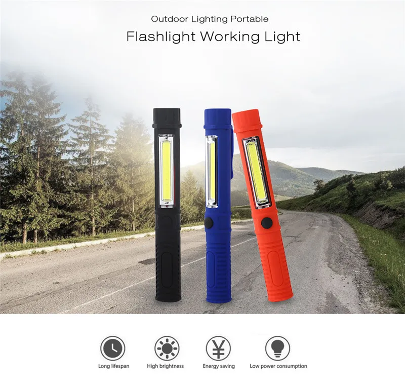 Многофункциональный светодиодный COB светильник для вспышки, мини-светильник для ручки, рабочий осмотр, факела, пластиковая портативная лампа с нижним магнитом и зажимом