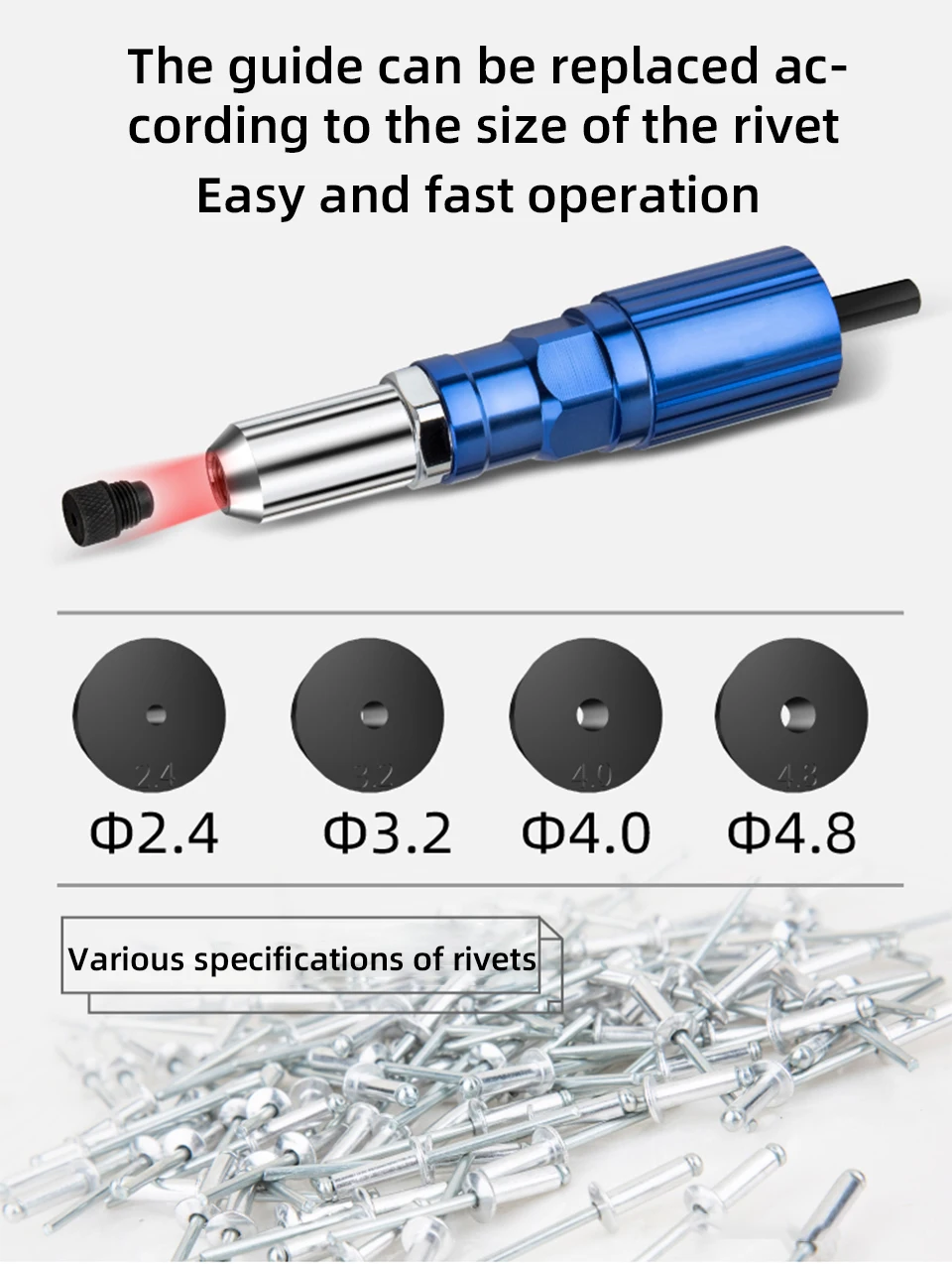 Ghuide можно заменить в соответствии с размером заклепок, легко и быстро.