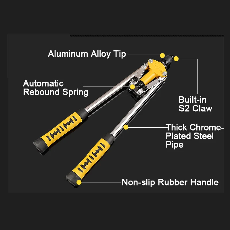 Желтая и черная двухцветная резиновая ручка из алюминиевого сплава, нескользящая ручная ручка, ручная работа, ручная заклепка, 17 дюймов, двойная заклепка, пистолет