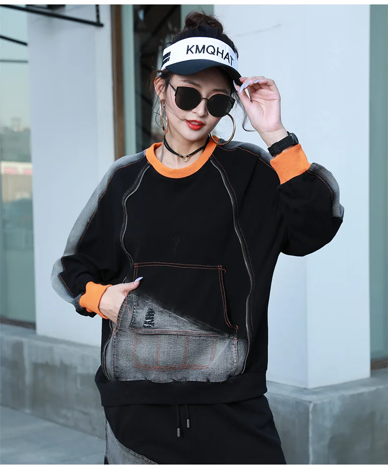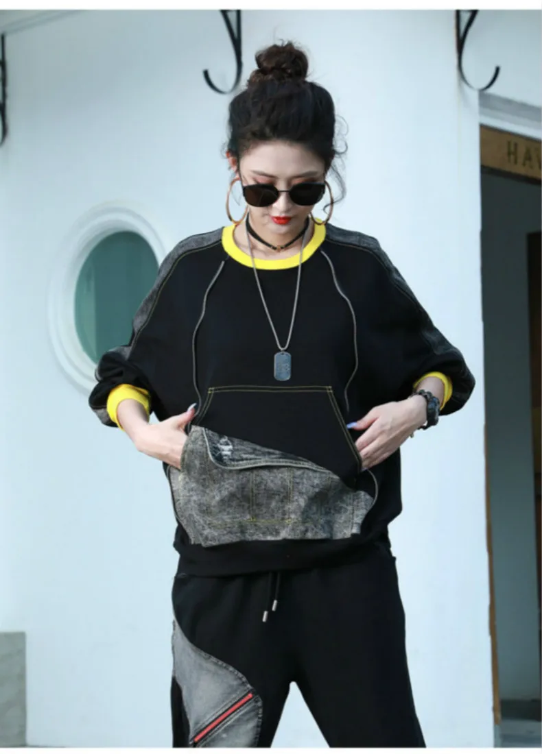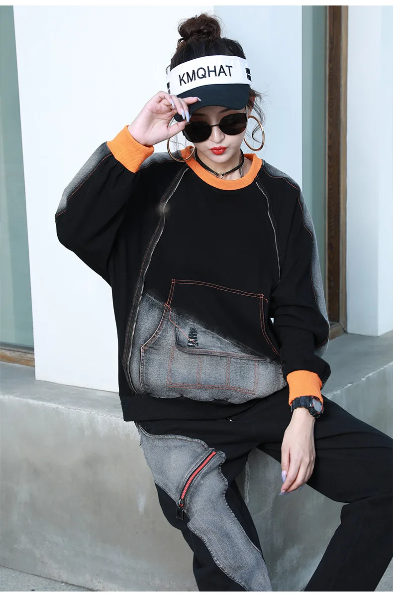 Punk Loose Patchwork O-Neck Vintage Sweatshirt