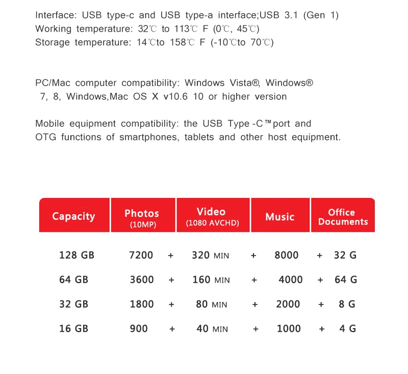 Емкость: 16 ГБ 32 ГБ 64 Гб 128 ГБ 256 ГБ.
