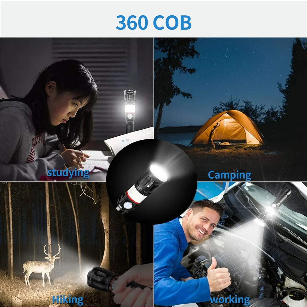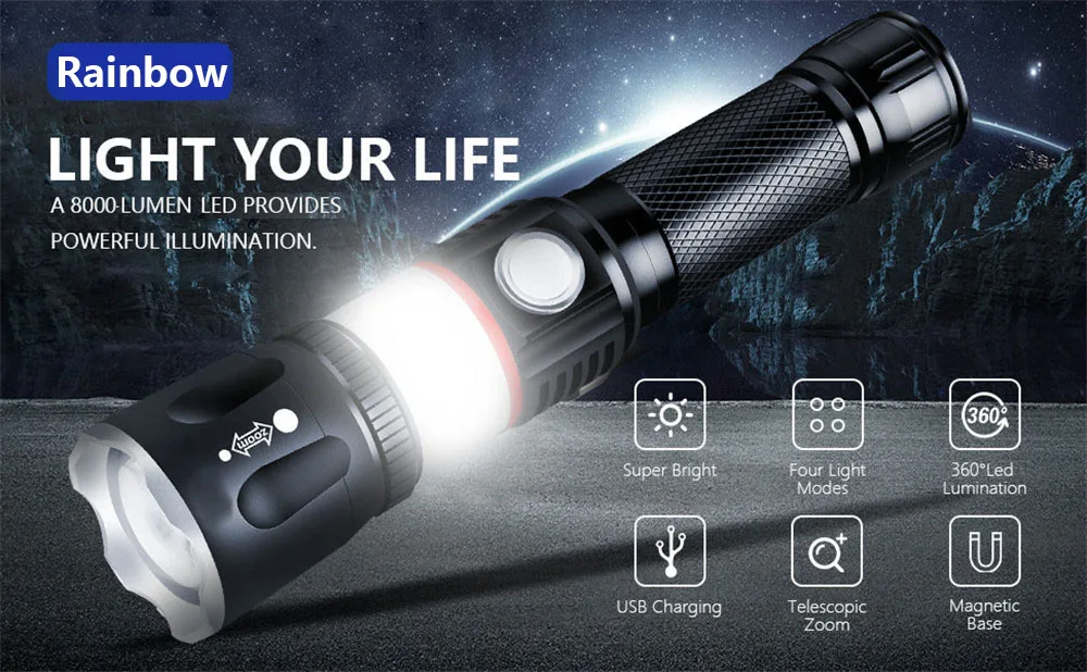 8000лм высокое качество L2 & COB Led Flash светильник USB Перезаряжаемый фонарь на магните масштабируемый водонепроницаемый светильник для кемпинга для пешего туризма