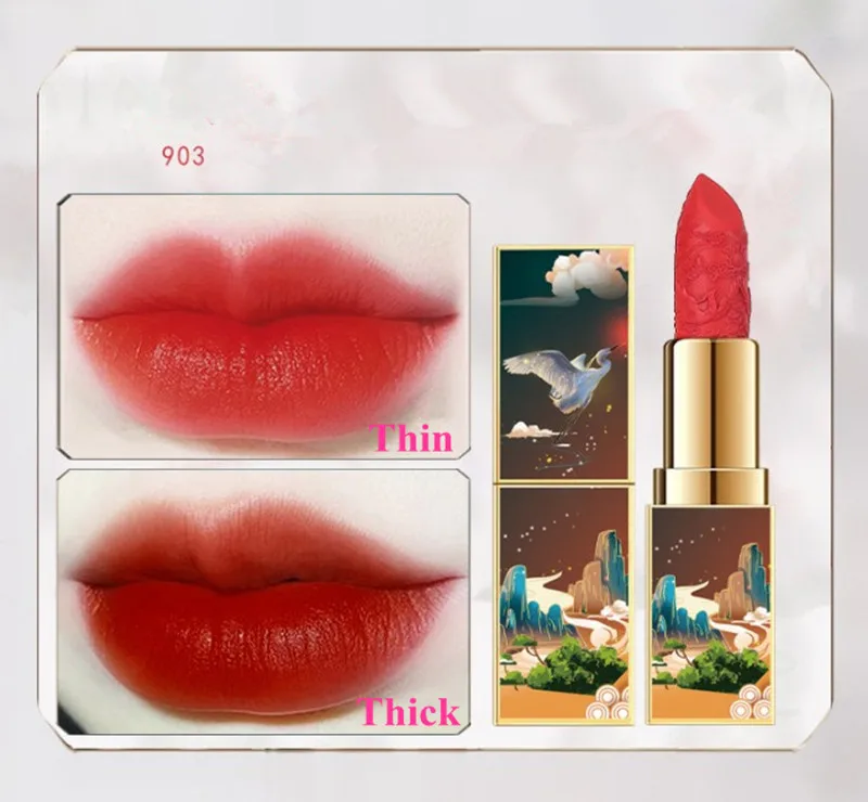 Китайский Винтажный стиль резная губная помада матовая бархатная стойкая Увлажняющая губная помада Glosses бальзам для губ Макияж Косметика Рождественский подарок