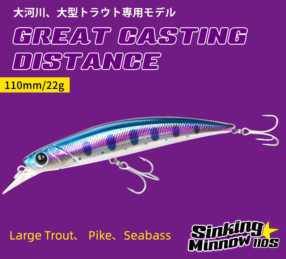 1. Плоское, но тяжелое тело создает резкую реакцию на тяжёлый вес, погружающийся в Минноу. Его начало действия быстро и способно последовательное подергивание удилищем в течение короткого расстояния.