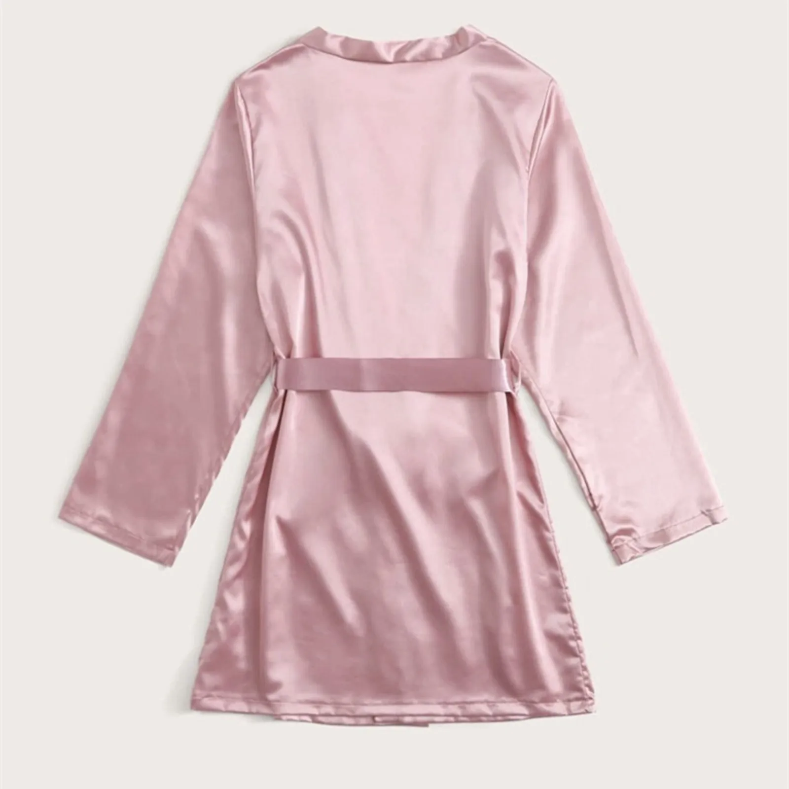 Сексуальное женское белье, сексуальное атласное ночное белье с длинным рукавом, банный халат с поясом, нижнее белье, пижамы, женские халаты