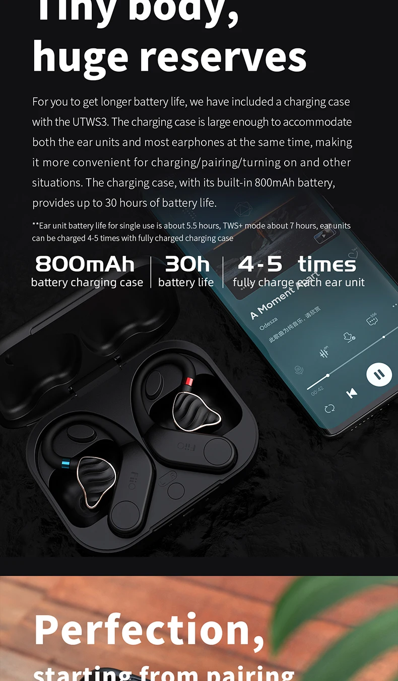 FiiO UTWS3 истинный беспроводной Bluetooth 5,0 усилитель AMP MMCX/0,78 мм разъем с 30 часов зарядки чехол поддержка APP управление TWS +/aptX