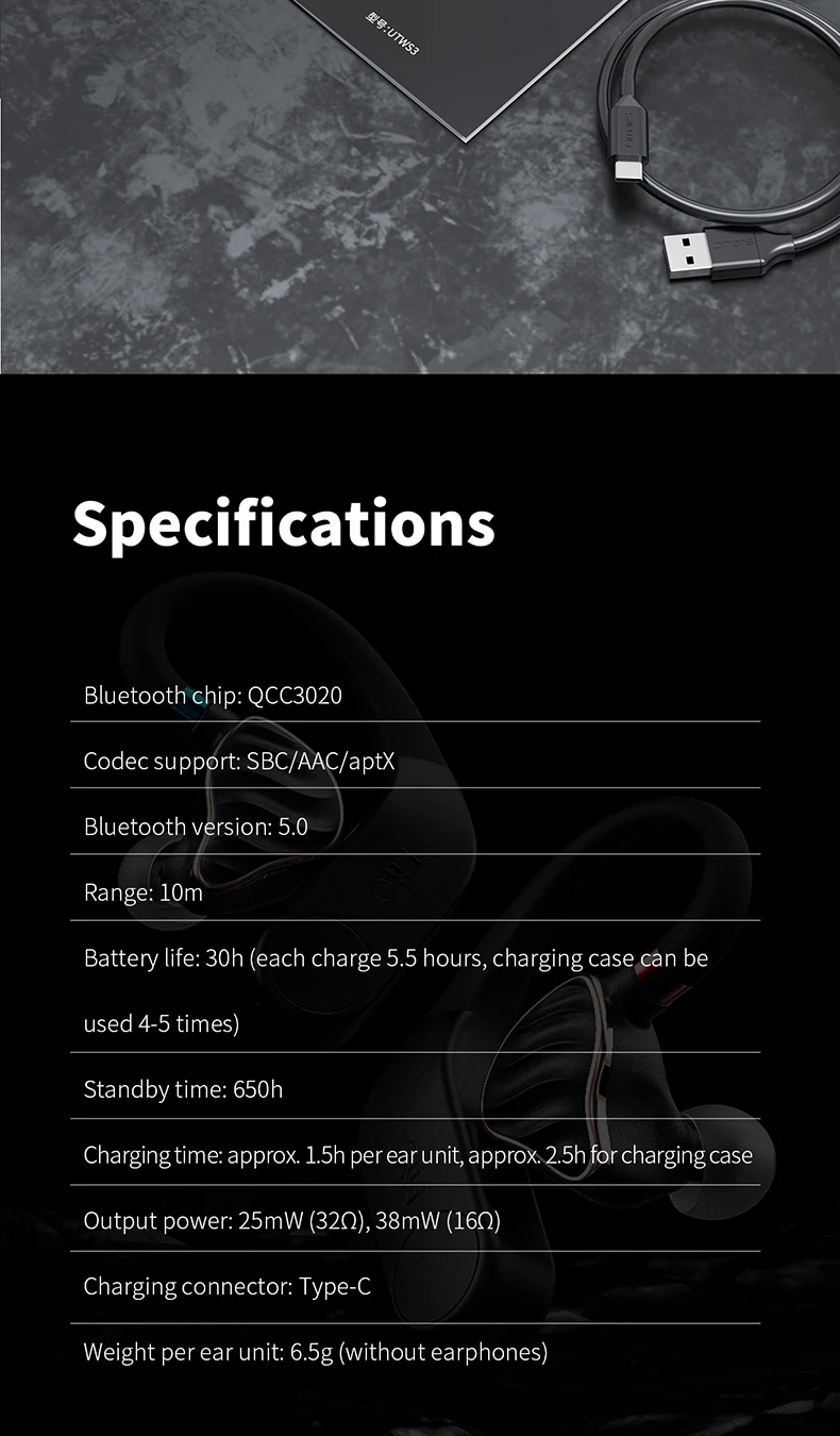 Чтобы продлить срок службы аккумулятора, мы включили зарядный чехол с UTWS3. Зарядный чехол достаточно большой, чтобы вместить наушники и большинство наушников одновременно, что делает его более удобным для зарядки/сопряжения/включения и других ситуаций. Зарядный чехол со встроенным аккумулятором 800 мАч обеспечивает до 30 часов автономной работы.