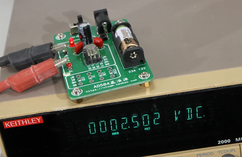 Factory calibration: 6½-Digit Keithley 2000 Multimeter calibration, the measured voltage marked on the shield shell.