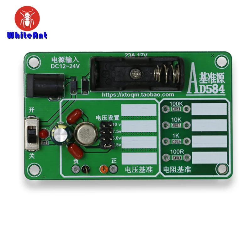 Output voltage: 2.5V / 5V / 7.5V / 10V by jumper selected 100K/10K/1K/100R precision resistors on board for reference.