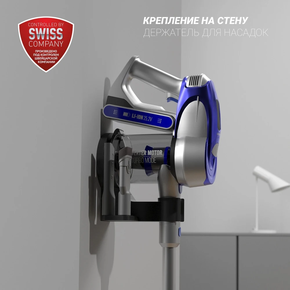 Беспроводной пылесос 2 в 1 - вертикальный и компактный ручной. Мощный инверторный мотор 450 Вт - Гарантия 10 лет! Время работы без подзарядки: до 60 минут. Низкий уровень шума <71 Дб. Циклоническая система сбора пыли. Фильтрация: НЕРА 10. Насадки - 3 шт. Электрощетка. Крепление на стену. 3 режима работы: средний, сильный, турбо. Мощность всасывания 160 аВт. Объем контейнера для пыли: 0.6 л. Время зарядки аккумулятора: до 4 часов. Аккумулятор: Lithium 2500 мАч 25.2 В. Зарядное устройство:- входное напряжение: 100-240 В;- частота: 50/60 Гц;- выходное напряжение: 30 В;- выходной ток: 600 мА.