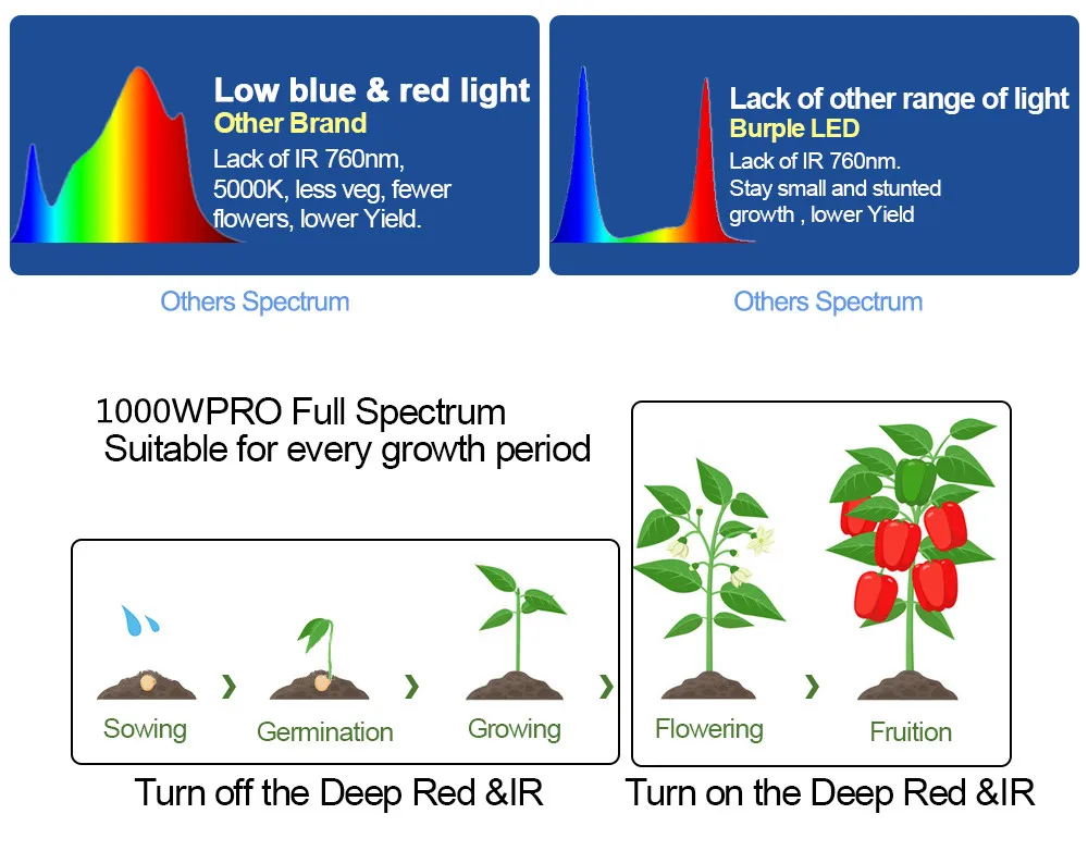 Соотношение ламп: 3000K + 5000K + 660NM + 760NM