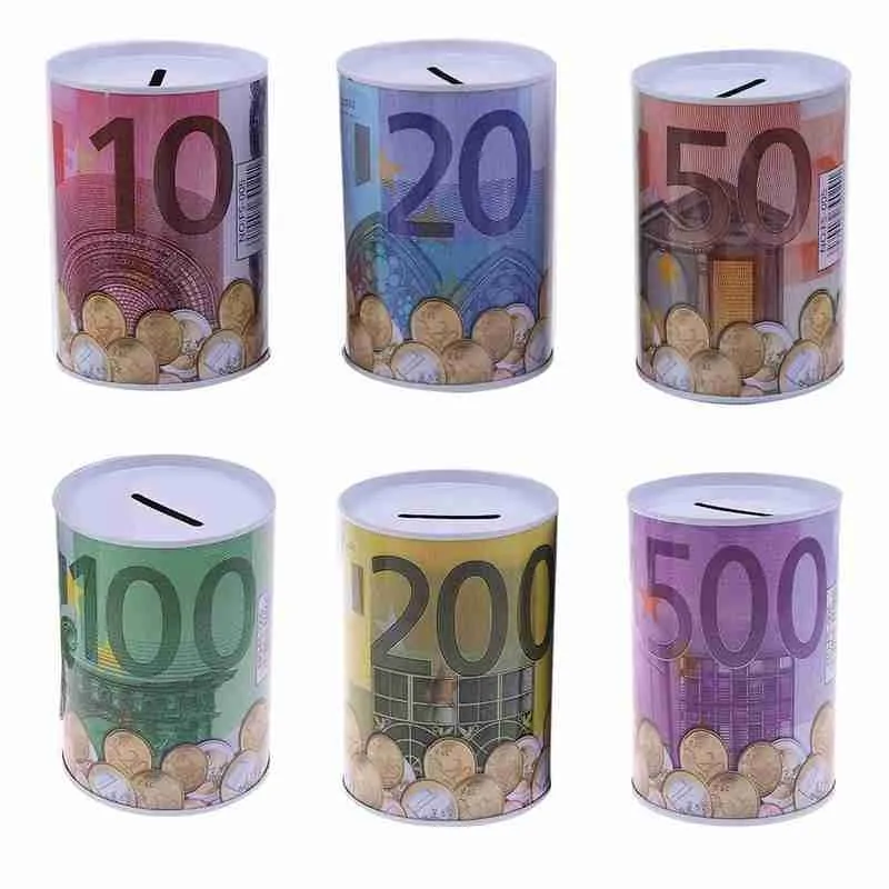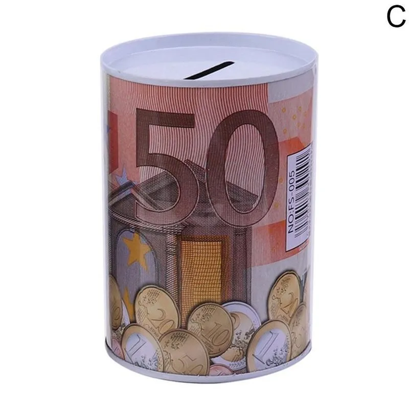 Жестяная цилиндрическая Копилка евро доллар картинка Монета коробка для хранения креативная цилиндрическая минималистическая копилка для денег подарок для детей