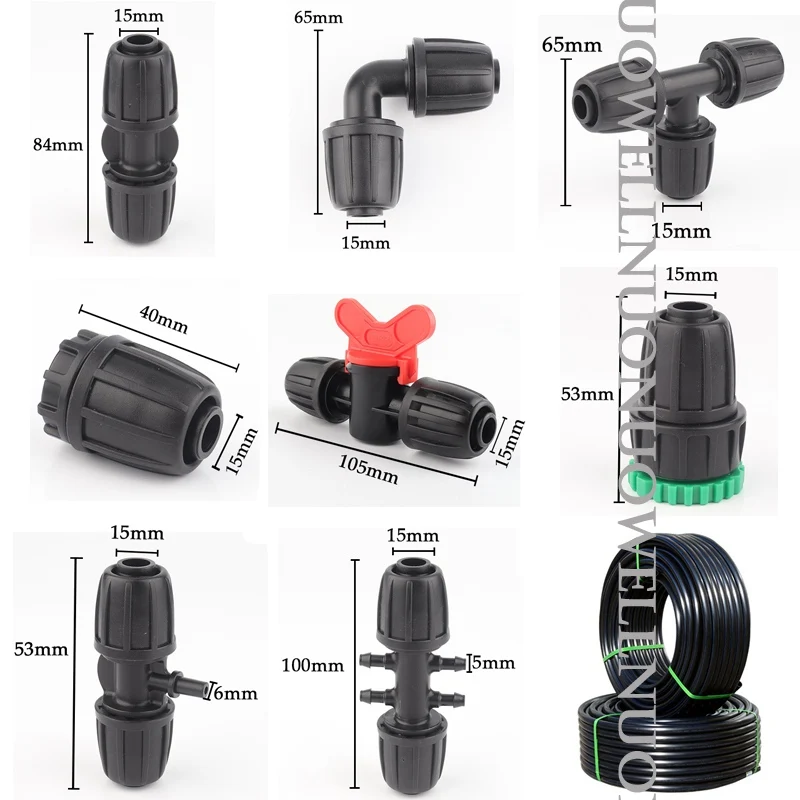 У нас есть все виды размерных разъемов: -16 мм 20 мм 25 мм, PE, соединитель труба -Соединитель шланга 3/5 мм 4/7 мм 8/11 мм -Разъем капельной ленты 16 мм... Пожалуйста, свяжитесь с нами, чтобы получить, если вам нужно.