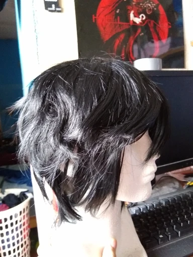 Цвет: как на фото. Материал: Парик: 100% высокотемпературное волокно. Маска: смола Сетчатая крышка: парик находится на регулируемой сетчатой крышке, которая подходит для большинства размеров головы. Pakcge включает: 1 * парик + 1 маска Примечание: парик, который мы отправим, является оригинальным, вам нужен стиль с воском в соответствии с вашими потребностями. Но такие как ахож, косы, грубая голова, они уже сделали, это стиль парика.