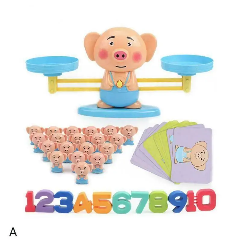 Этот набор игрушек из 65 предметов включает в себя: 19 обезьян, 1-10 фигур, 30 двухсторонних карт, весы обезьяны, основание, 2 циферблата и простые инструкции для чтения.