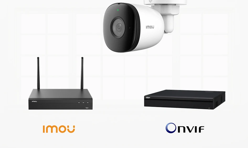 Камера поддерживает стандарт Onvif, поэтому она работает с NVR устройствами других брендов через Onvif.