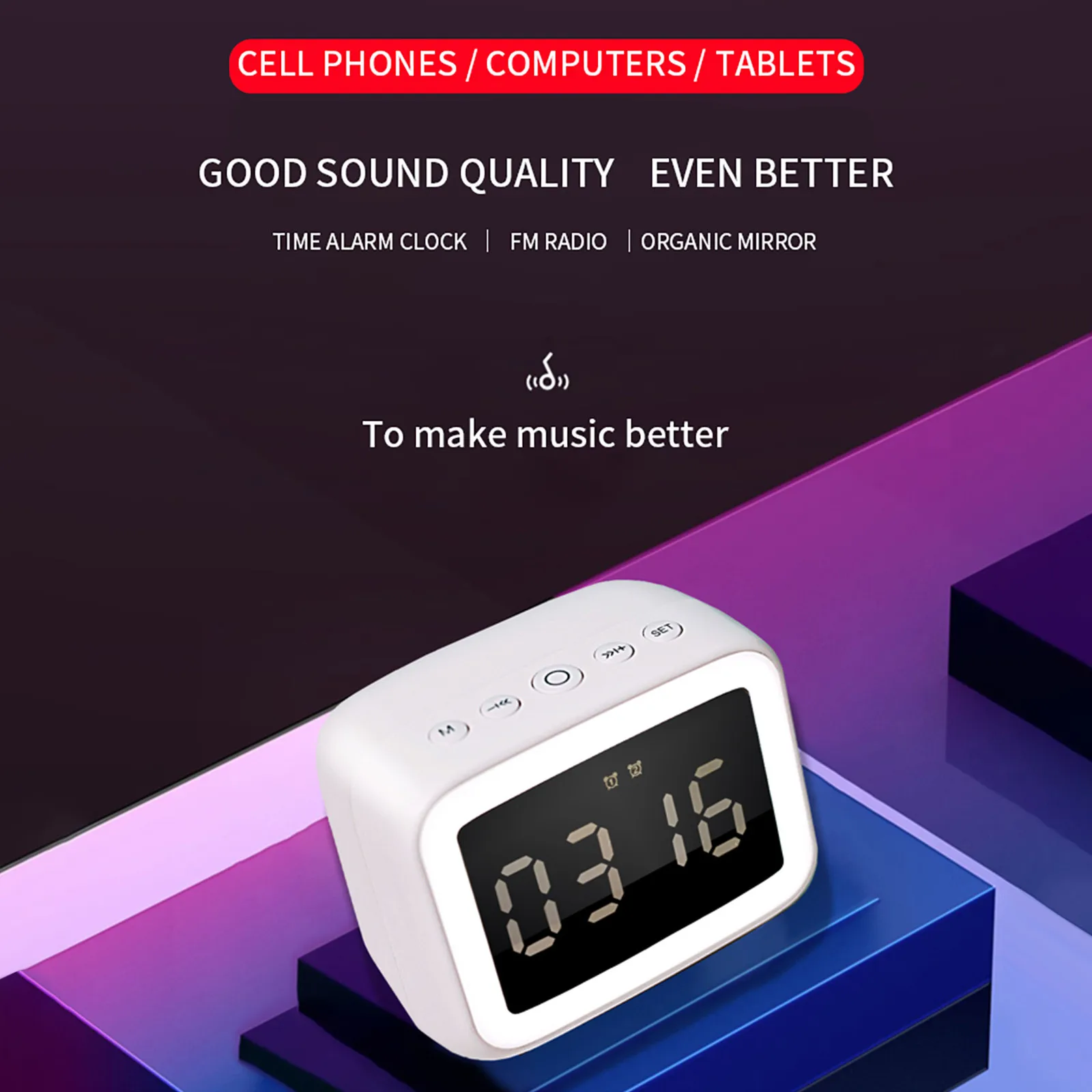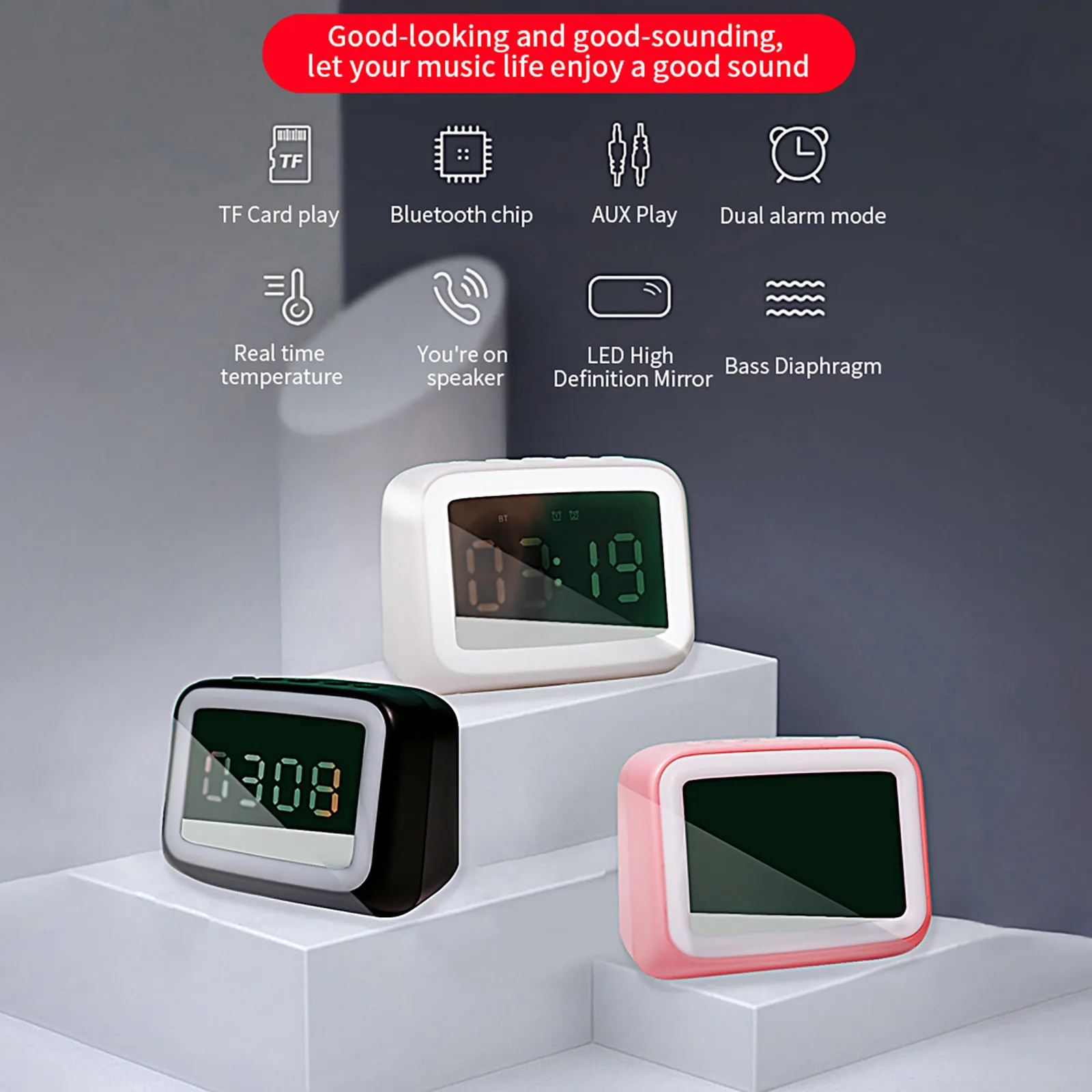 Беспроводная связь по BLUETOOTH V.5.0 Более стабильная и быстрая передача сигнала и более низкая потребляемая мощность, сильная кампативность для в настоящее время основных брендов смартфонов, планшетных ПК, ноутбуков... и т. Д. Цифровой будильник 1. Чтобы вы просыпались утром и спали ночью, можно установить и использовать два будильника самостоятельно, попрощайтесь с традиционными будильникамиМодный и портативный дизайн1. Легкий и прочный корпус из АБС-пластика, идеальное украшение для дома и офиса.