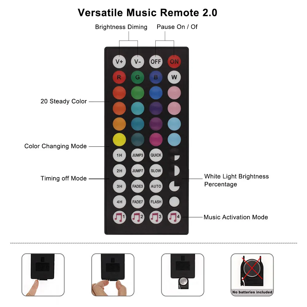 Package1: 44-клавишный пульт ИК-пульт дистанционного управления Package2: 44-клавишный пульт музыкальный ИК контроллеп Рабочая температура: -20-60 ℃ Рабочее напряжение: DC5- 12 В Размер изделия: L62 * W35 * h23мм Выход: Три CMOS слив открытый выход Режим подключения: общий анод Максимальный ток нагрузки: 2 А каждого цвета Модель аккумулятора: CR2025 (не входит в комплект)