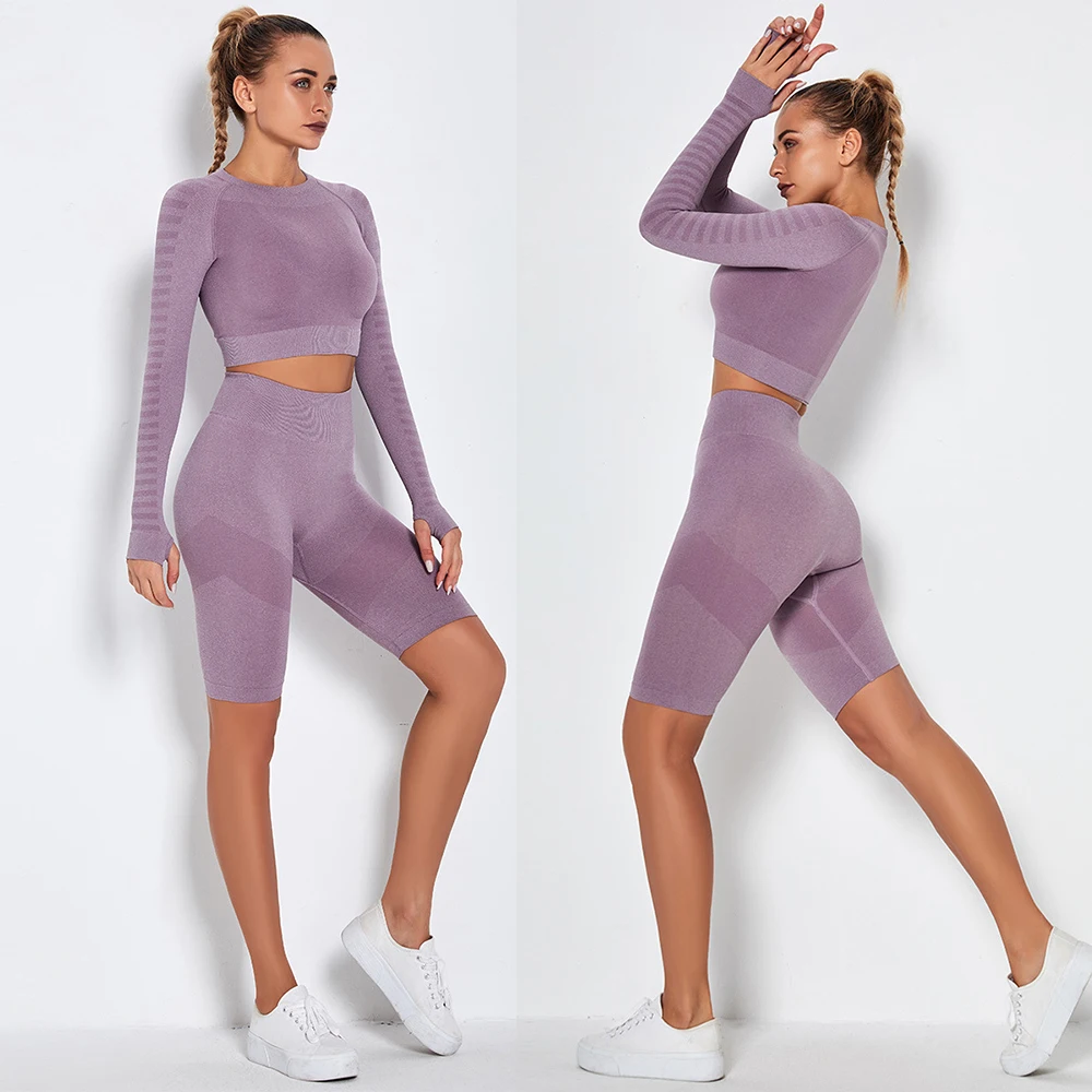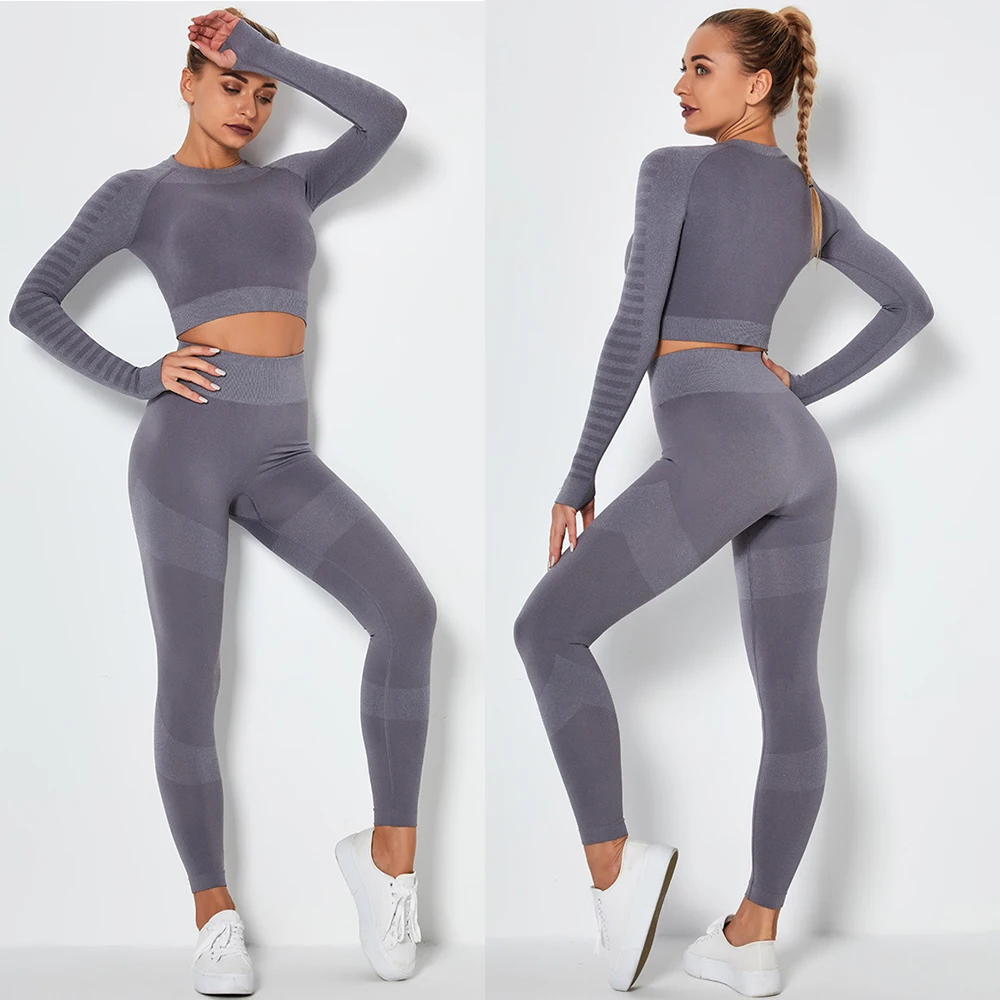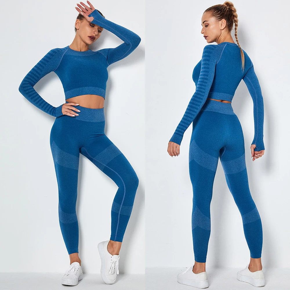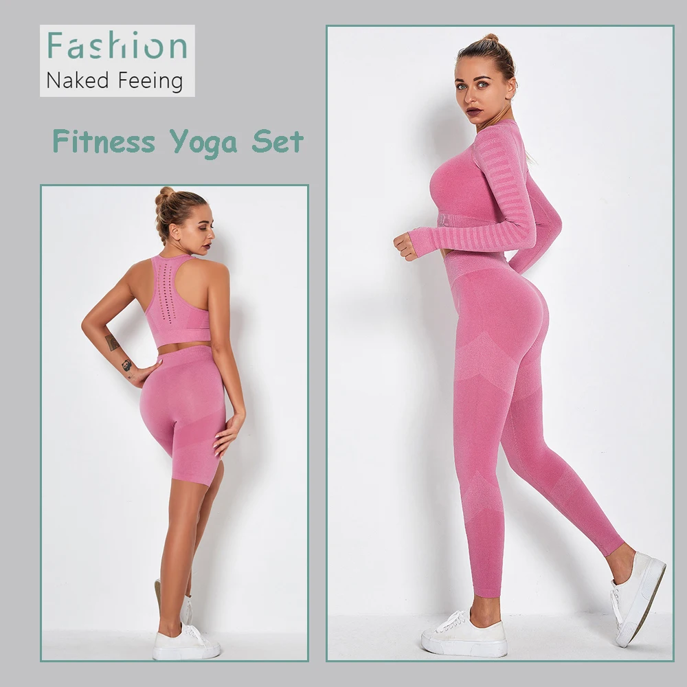 Женский бесшовный комплект для йоги, спортивные костюмы для фитнеса, одежда для спортзала, футболки для йоги с длинным рукавом, высокая талия, леггинсы для бега, тренировочные штаны, рубашки