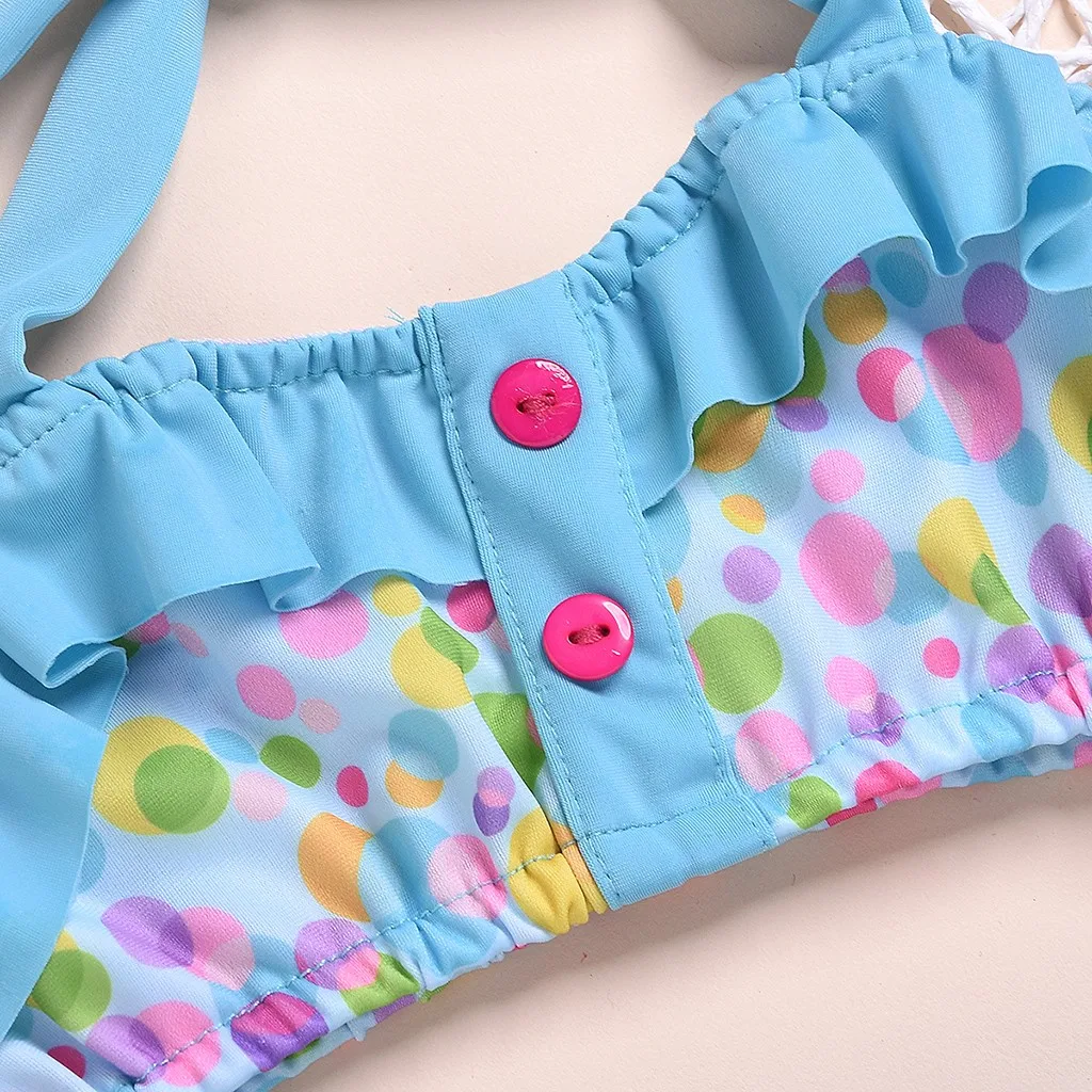 Детский летний купальник-бикини с рюшами на подтяжках в горошек для маленьких девочек; Комплект купальных костюмов