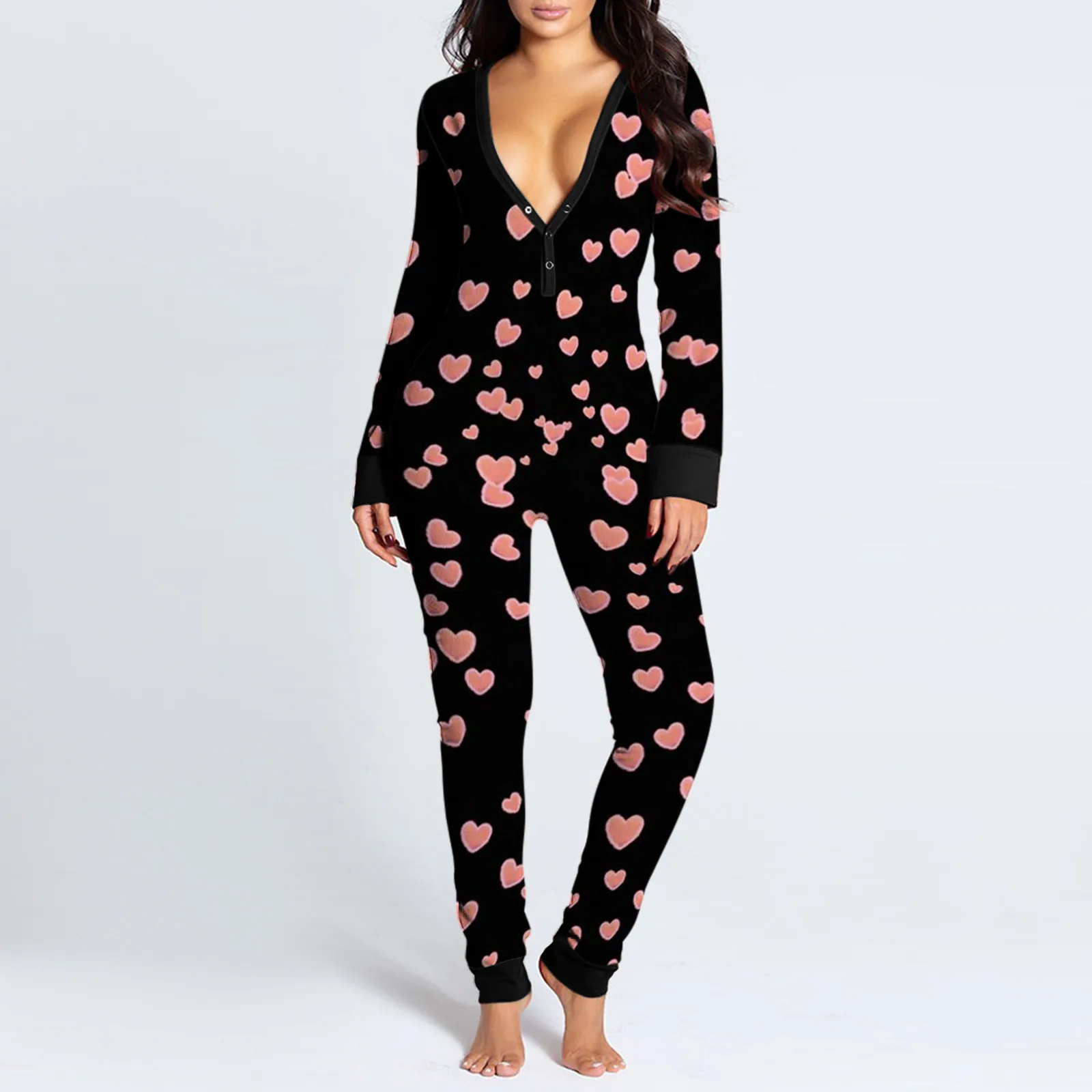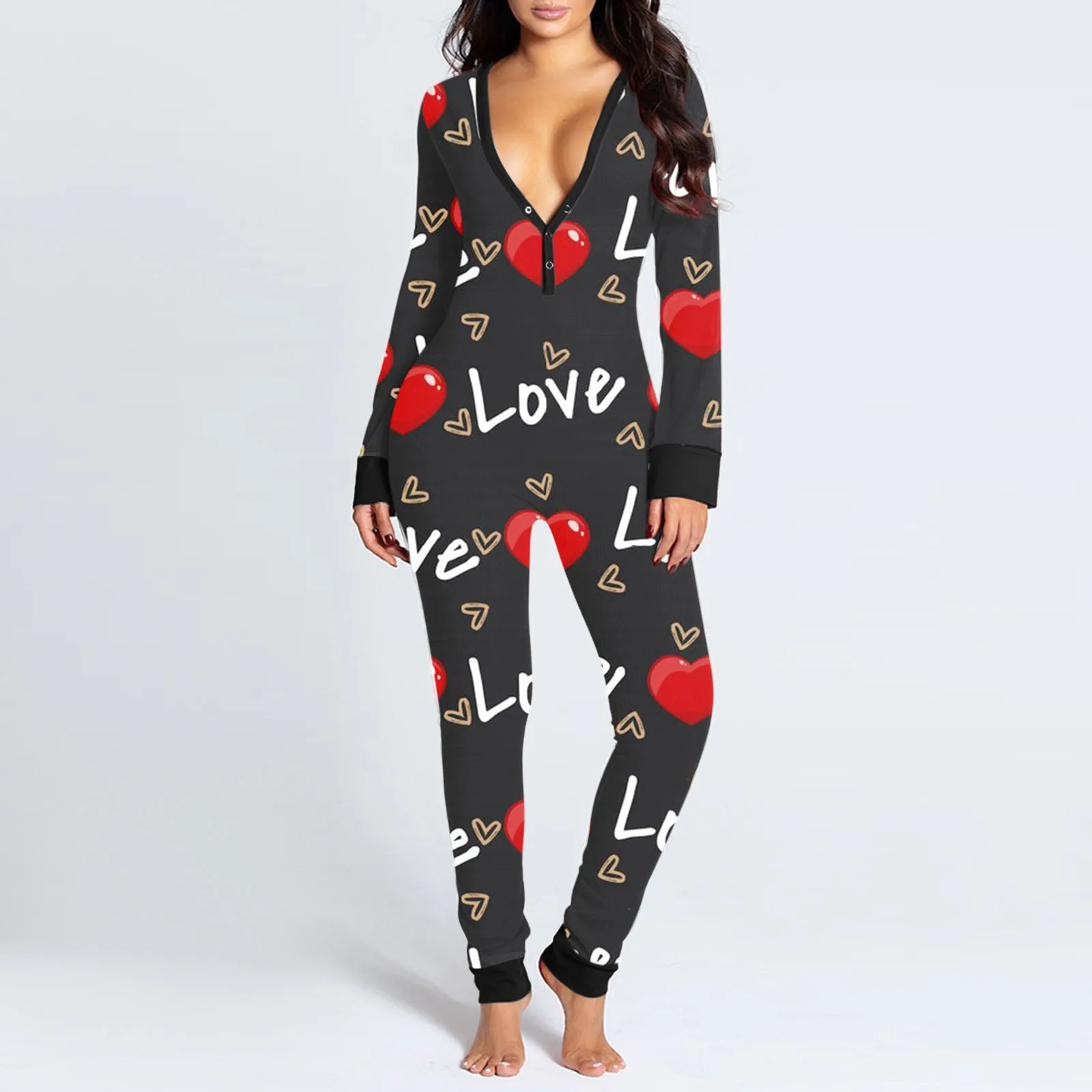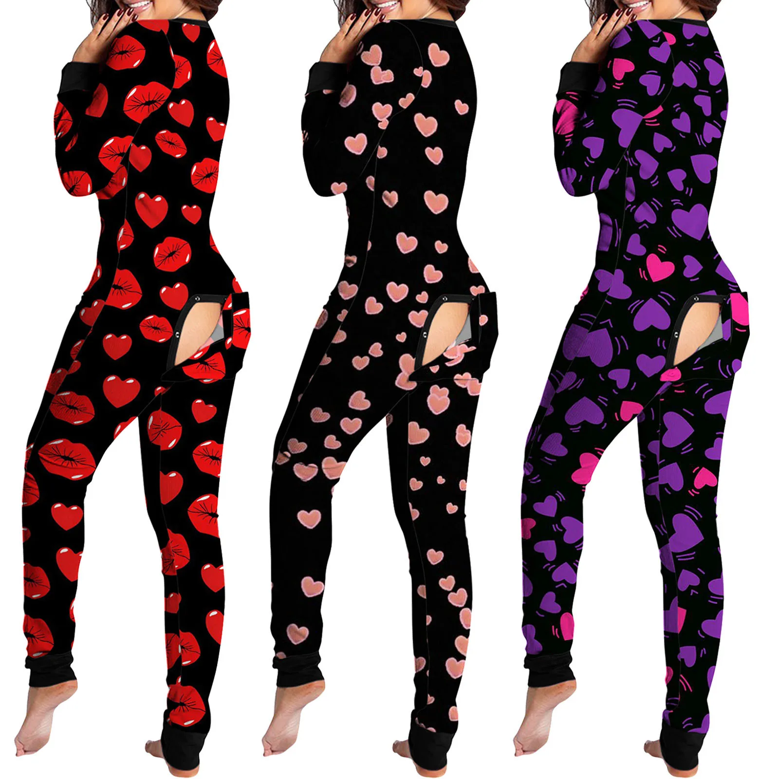День Святого Валентина, женский комбинезон, пижама на пуговицах, комбинезон с клапаном, одежда для сна, рот, губы, с принтом в форме сердца, взрослые комбинезоны, Пижама