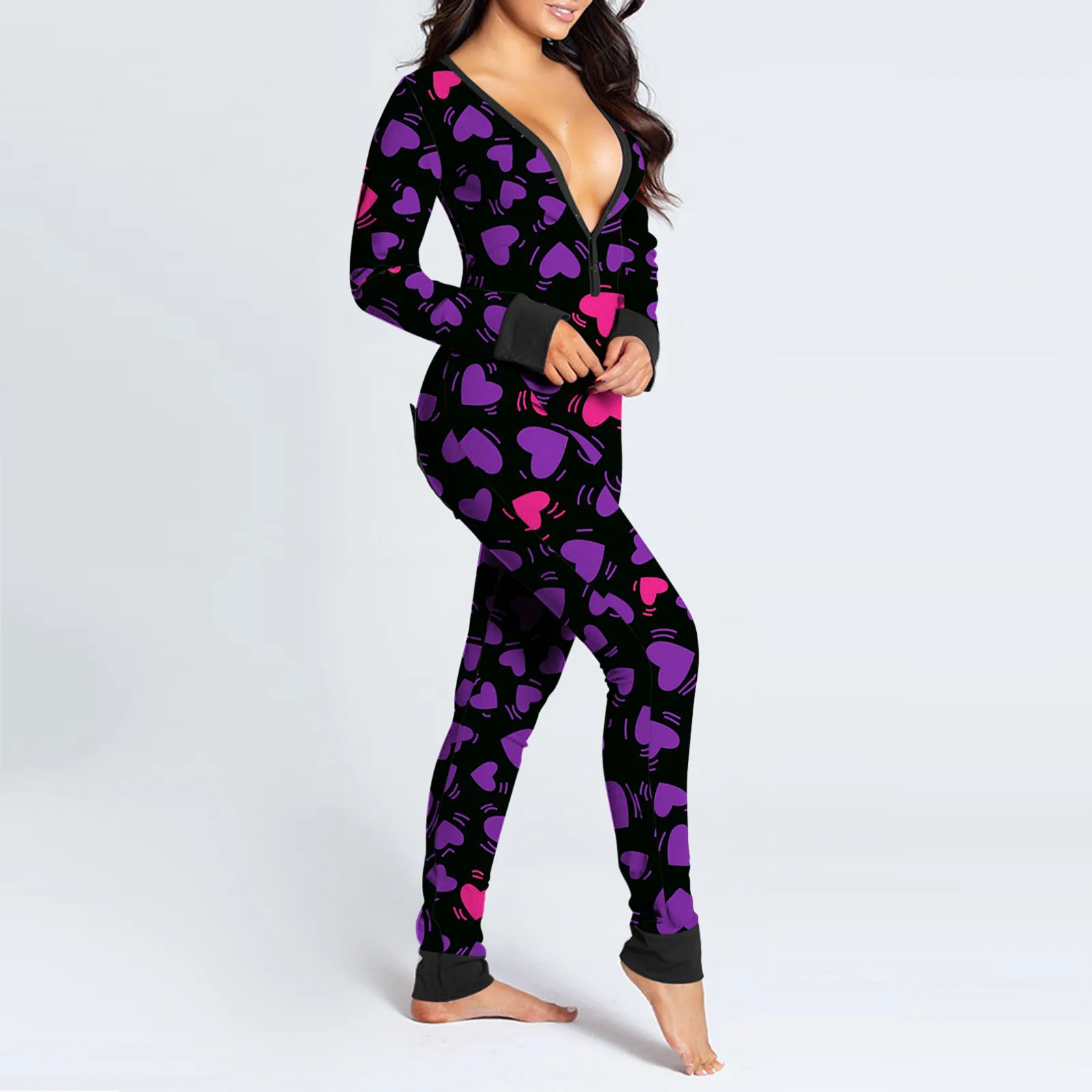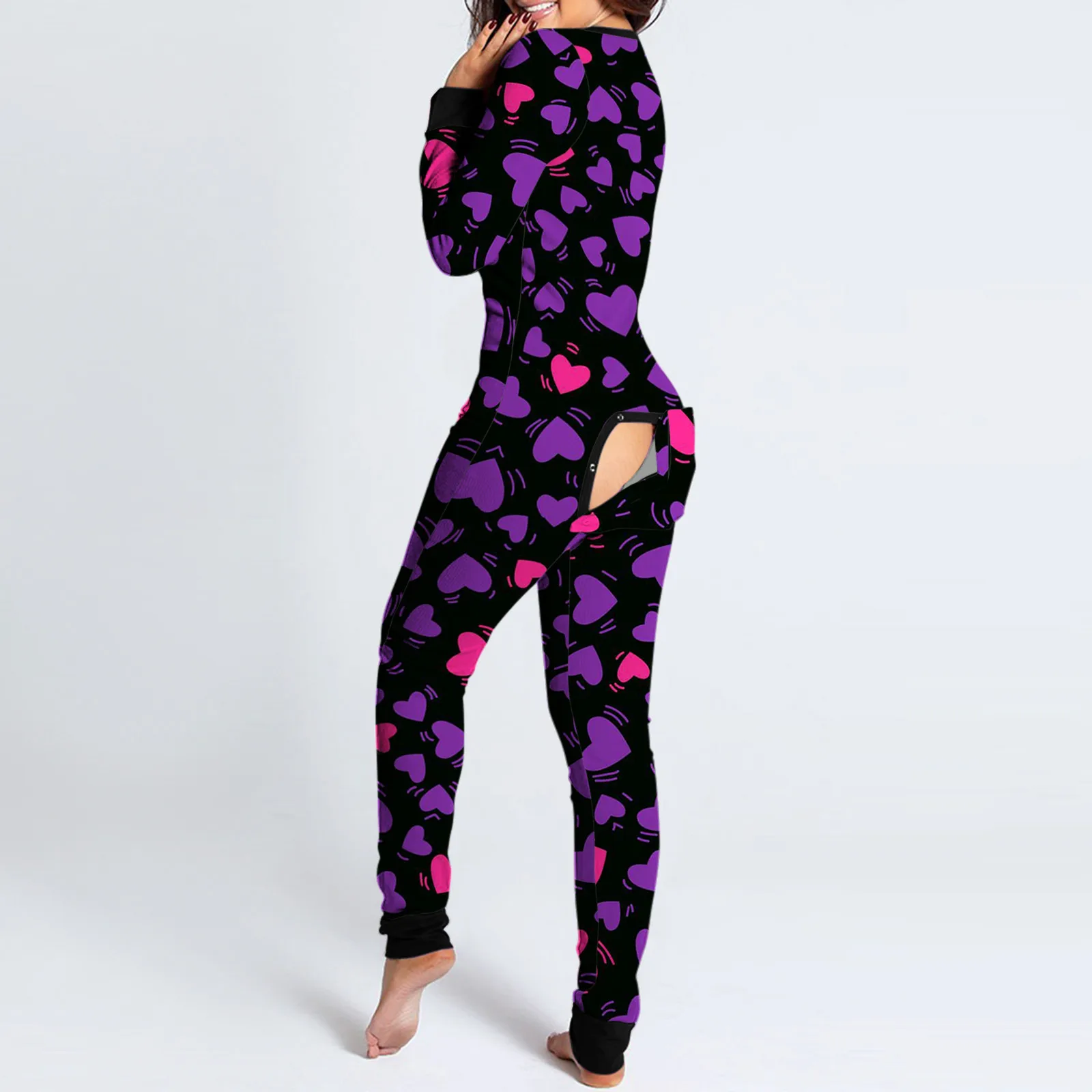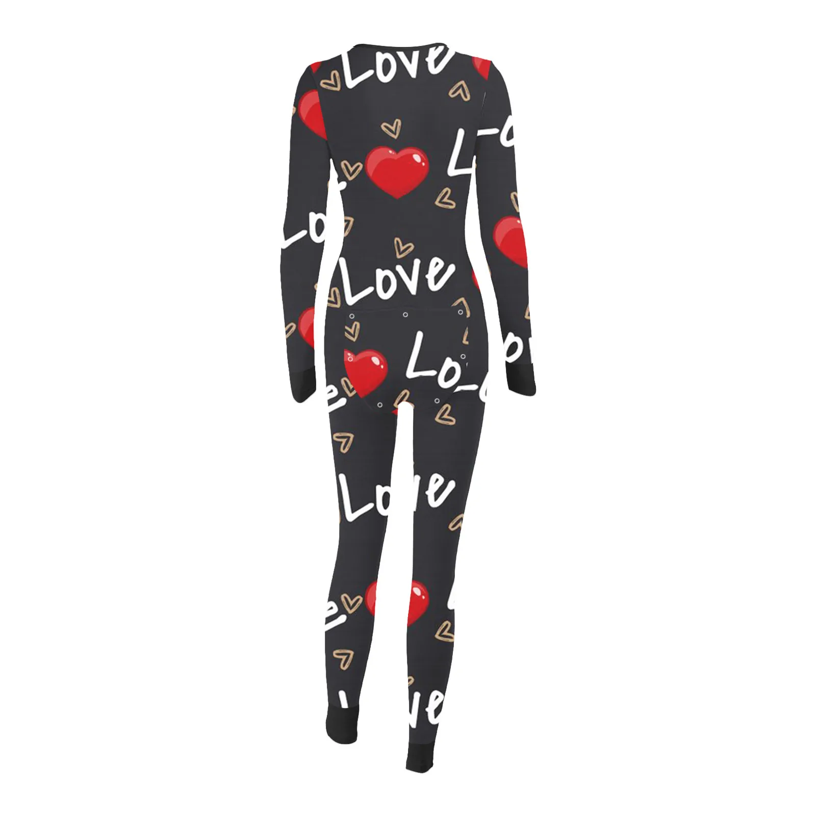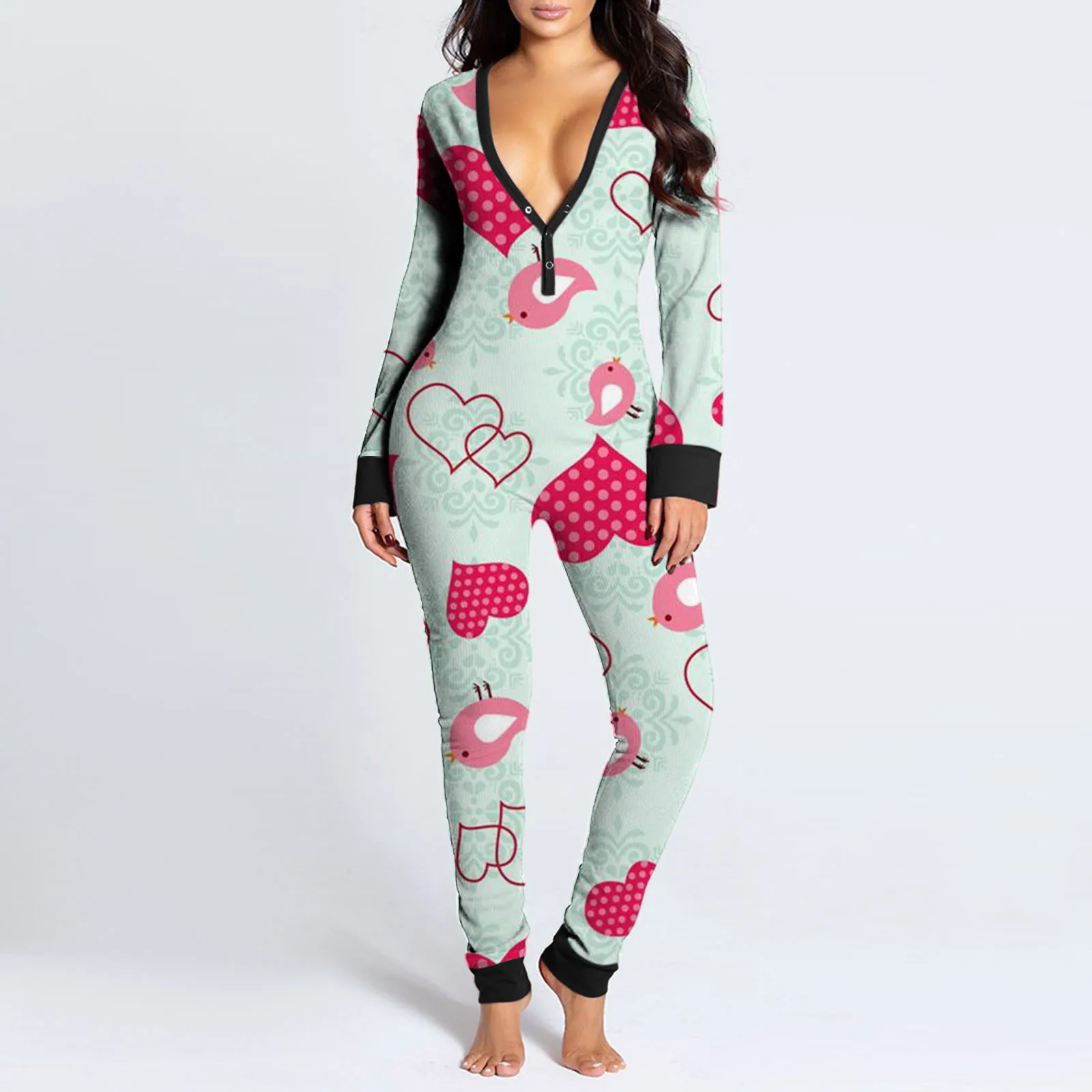 День Святого Валентина, женский комбинезон, пижама на пуговицах, комбинезон с клапаном, одежда для сна, рот, губы, с принтом в форме сердца, взрослые комбинезоны, Пижама