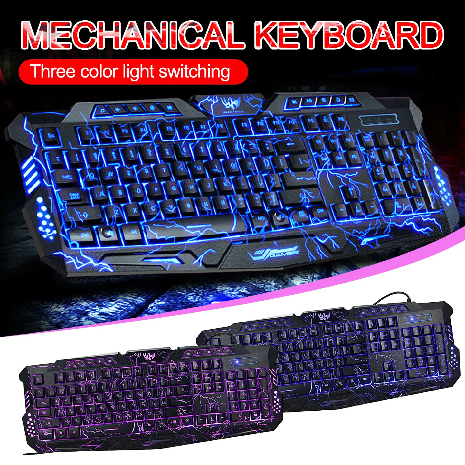 1X 3 Цветная USB подсветка светодиодная подсветка игровая трещина клавиатура M200