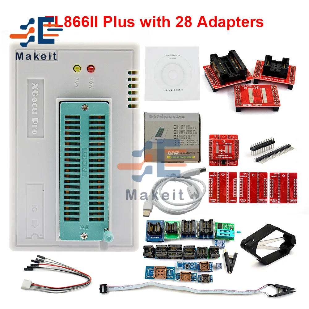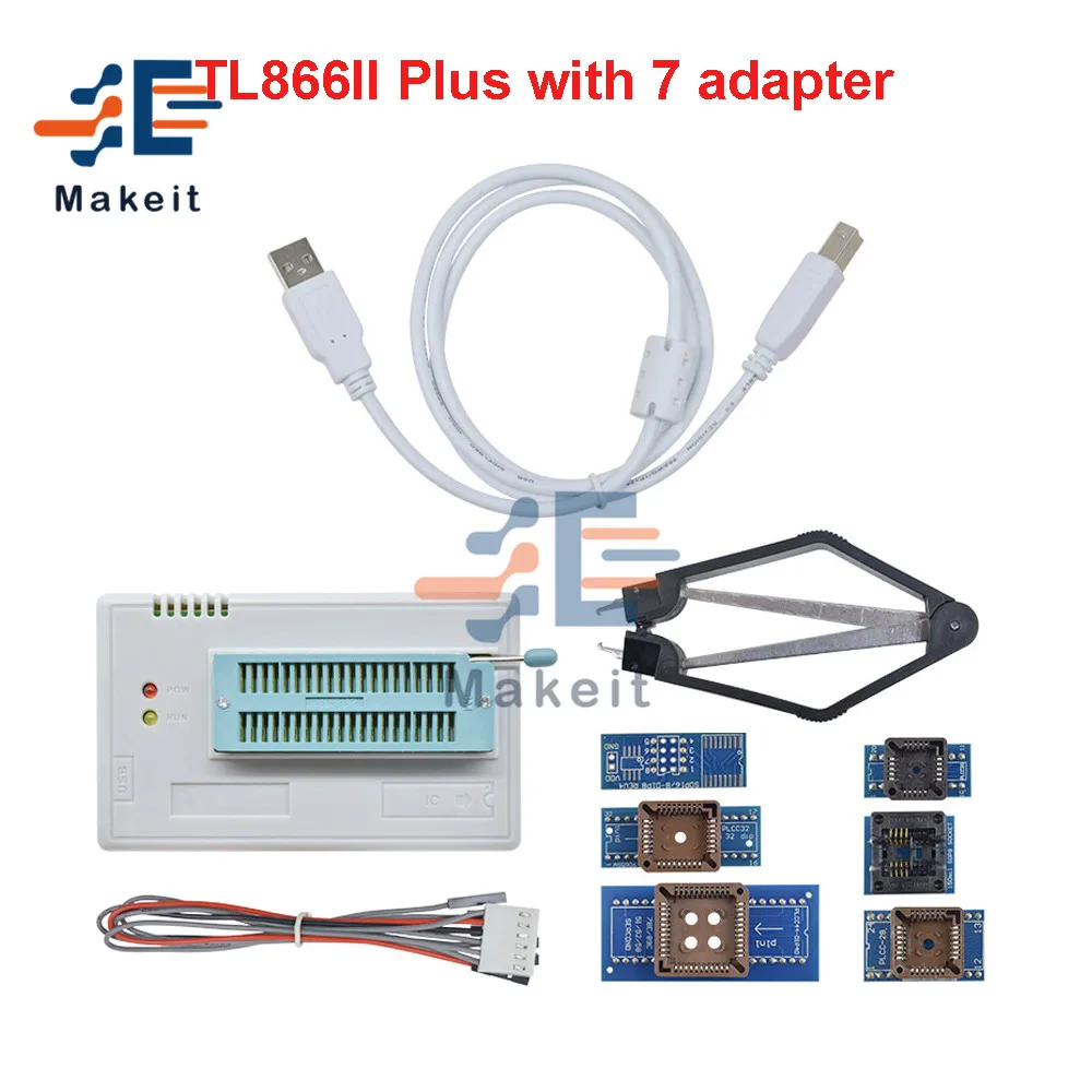 TL866II плюс универсальный Minipro программист + 7/10/17/28 адаптеры SOP8 IC зажим TL866 PIC Биографические очерки высокое Скорость Flash EPROM