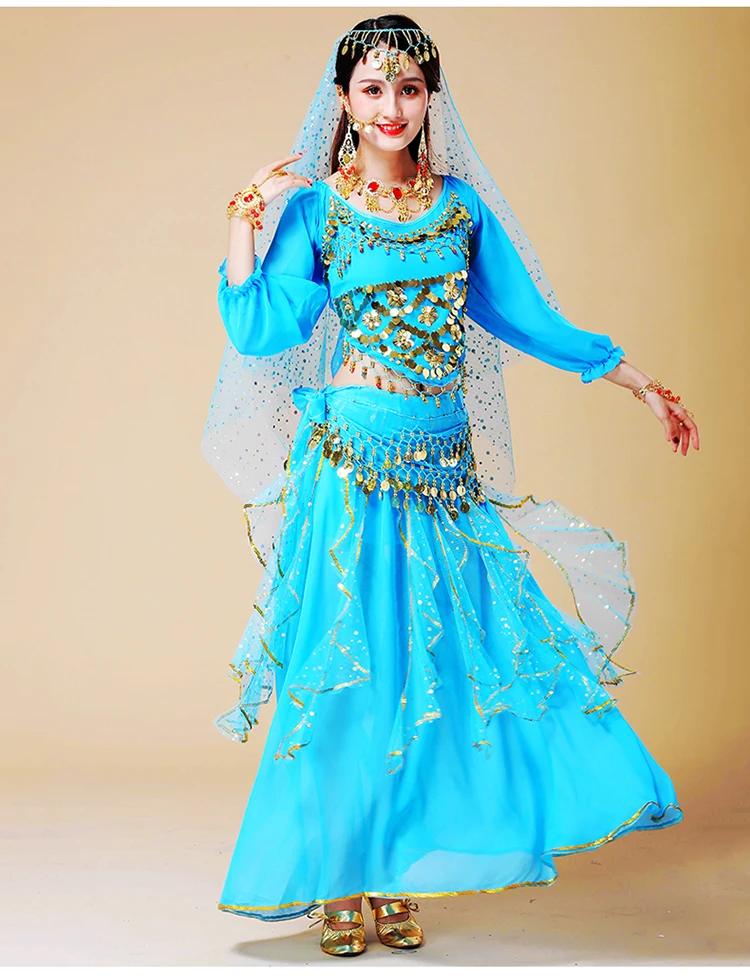 4 шт./компл.: брюки + футболка + Косынка + поясная цепочка;