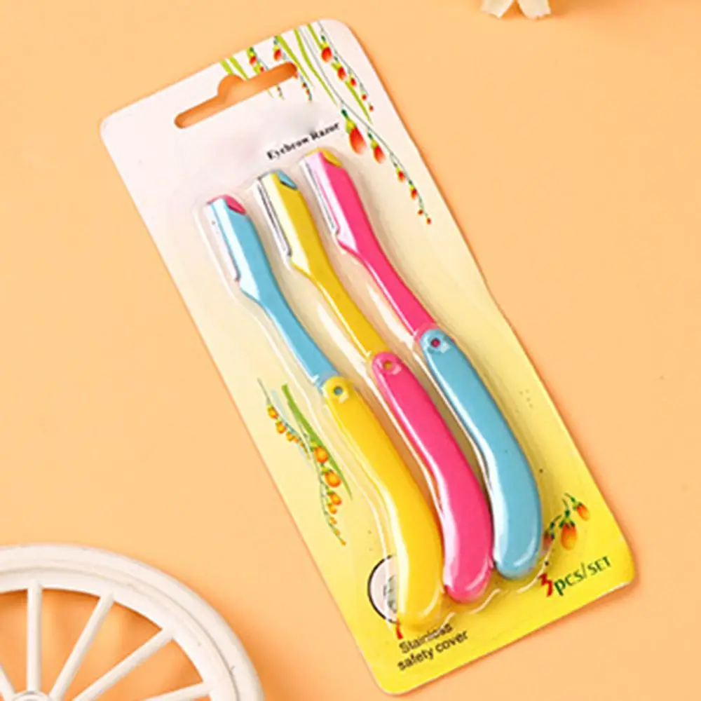 Создать идеально форменные брови Отлично подходит для тонких волос и работы с деталями Разные цвета Когда Пинцет слишком сильно болит, или у вас просто нет времени, эти маленькие бритвы будут работать отлично. Легкий и Нескользящий Захват для легкого управления Нержавеющая/защитная крышка. Бритва для бровей удаляет тонкие волоски бровей, шеи и лица, а также ненужные волоски в другом месте. Даже новички могут легко и безопасно использовать его. Для более эффективного использования нанесите крем для бритья перед бритьем. После использования обязательно положите защитную крышку на бритву и держите ее в недоступном для детей месте. Посылка в комплекте 3 шт. в комплекте Бритва для бровей