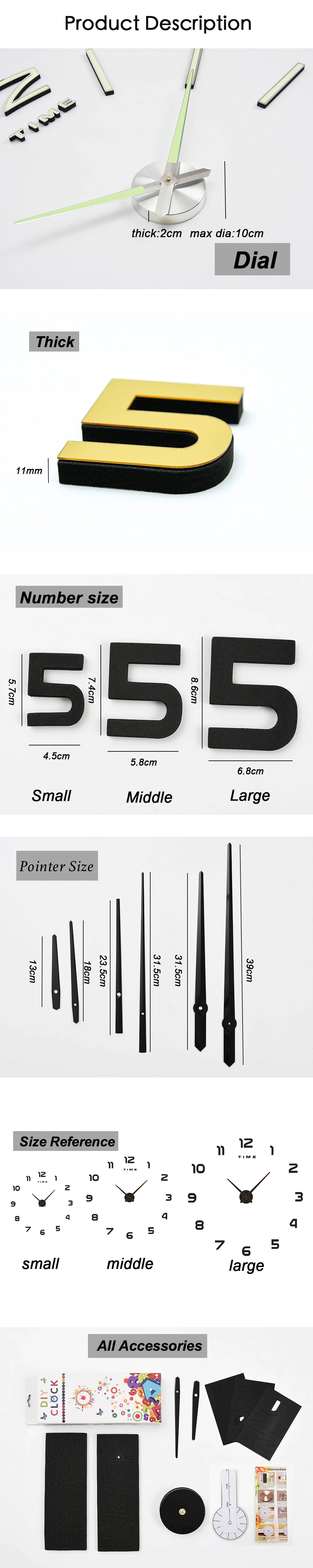 Современный Креативный дизайн: Эти 3d часы diy имеют большой размер и акриловую зеркальную поверхность. Это отличное украшение для пустой стены.