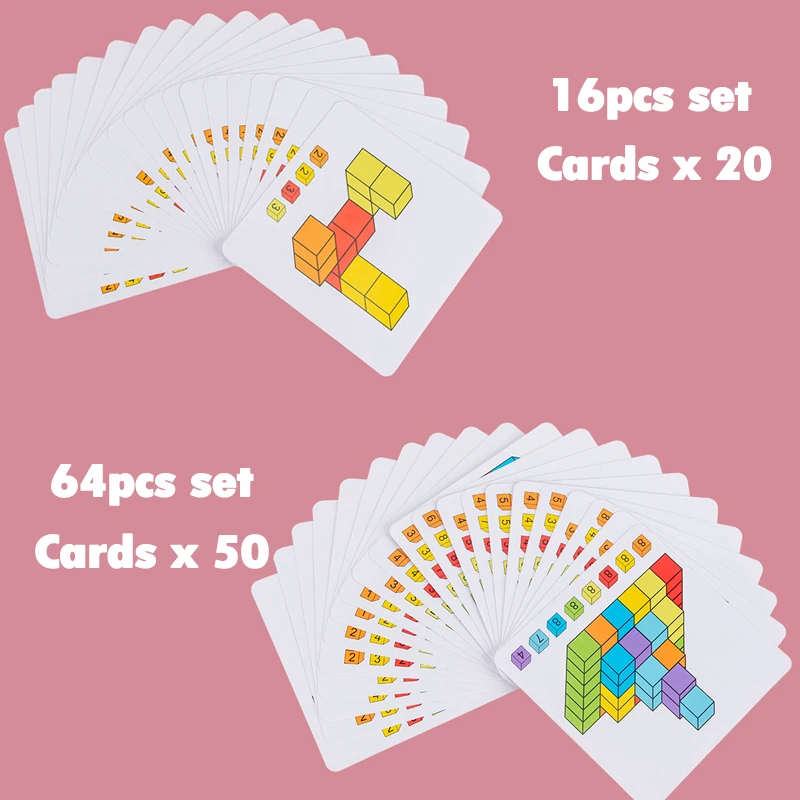 64pcs set: wooden block x 64 + card x 50