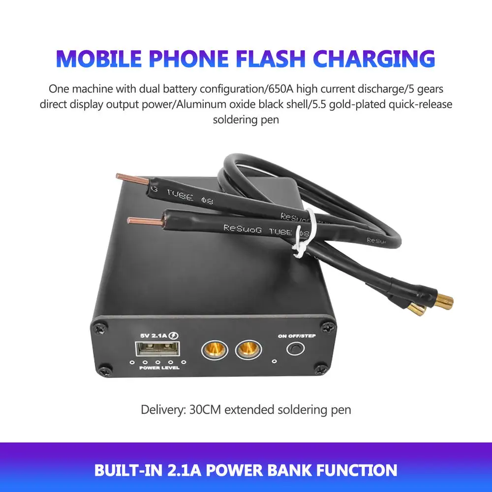 2. С функцией ручной зарядки 2.1A, это точечная сварочная машина, а также внешний аккумулятор. Он также может использоваться как внешний аккумулятор, когда не точечная сварка!