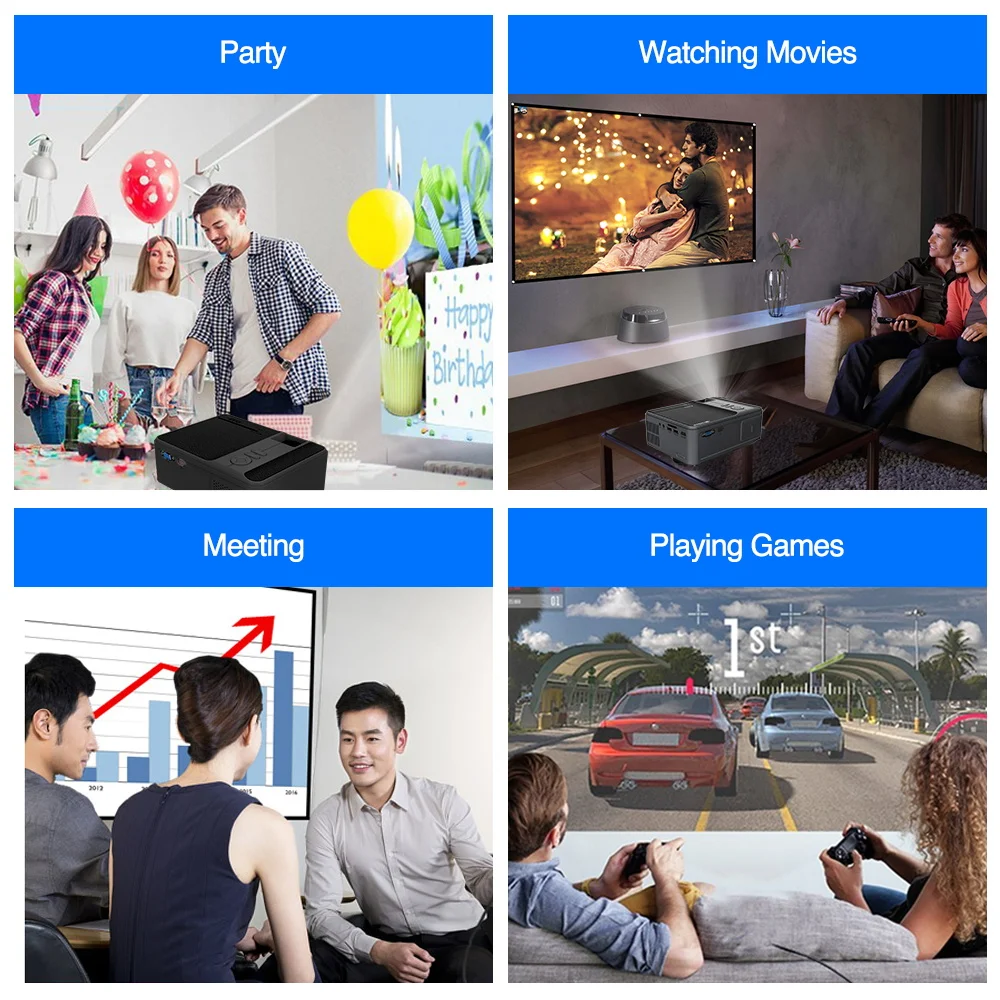 Иметь проектор A3, дать себе награду, чтобы быть расслабленным и наслаждаться жизнью. Вы можете наслаждаться фильмами по ночам! Или Наслаждайтесь праздником с друзьями или близкими, такими как Рождественская вечеринка, Новогодняя вечеринка, футбольные часы, юбилейная вечеринка, вечеринка Марио...