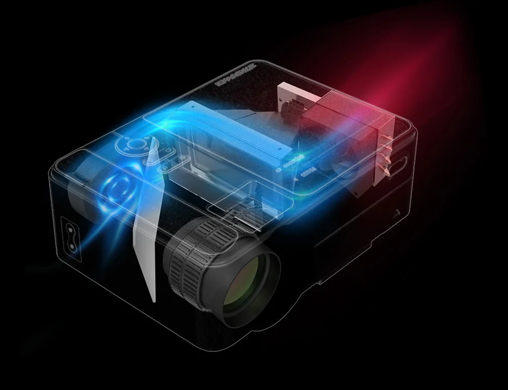 Новейшая технология двухвентиляторной системы, основанная на передовой технологии шумоподавления, позволяет решить проблему назойливого обдува при перегреве и шуме. Благодаря инновационной системе охлаждения мини-проектор может работать плавно и бесшумно, обеспечивая вам расслабляющее время.