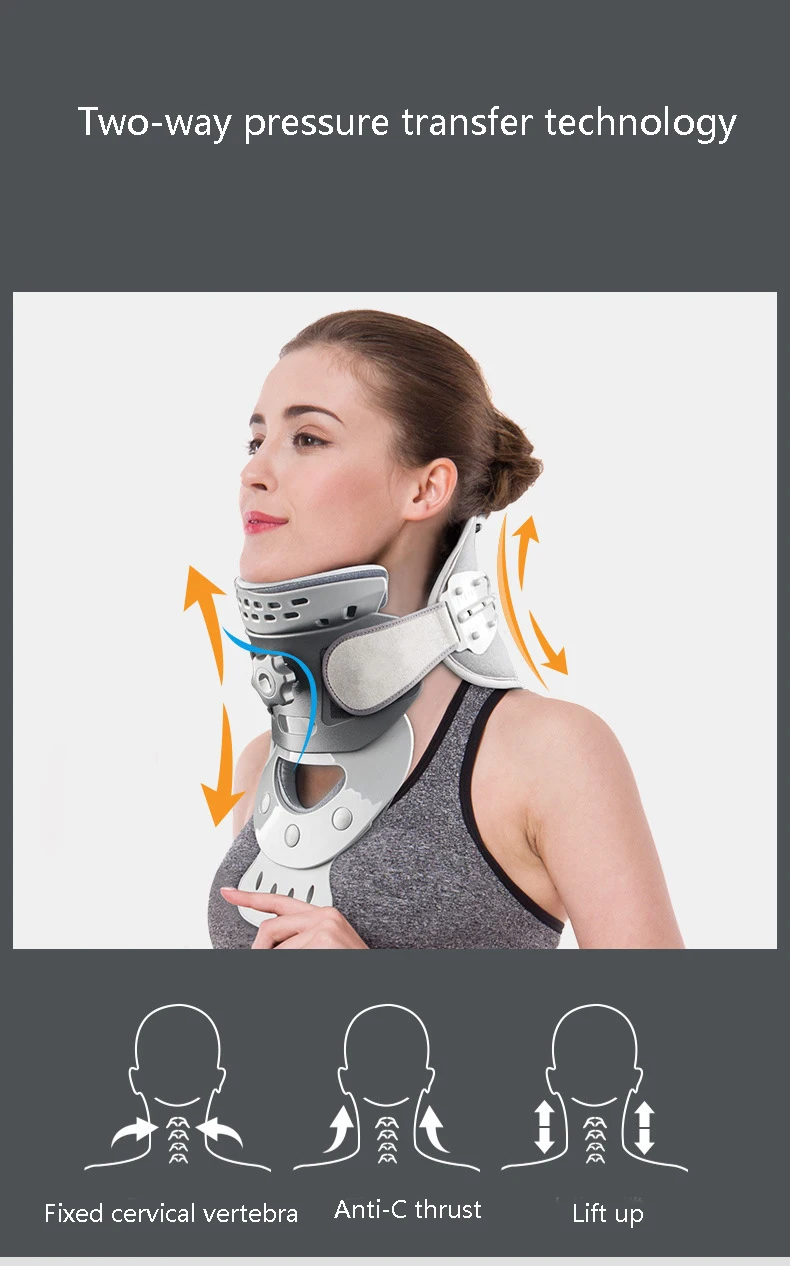 1. Зафиксируйте шею в лучшую цервикальную физиологическую кривизну, сделав использование передней кронштейна и задней стяжки, которая представляет собой дизайн обертки 3 в 1;