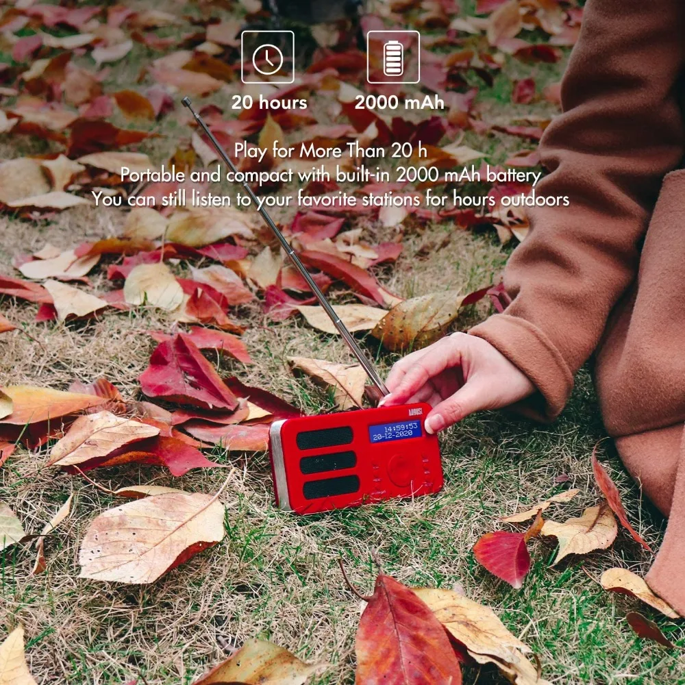 3, Встроенная перезаряжаемая батарея-нет необходимости покупать батареи со встроенным литий-ионным аккумулятором в комплекте-Наслаждайтесь радио до 20 часов на одной зарядке