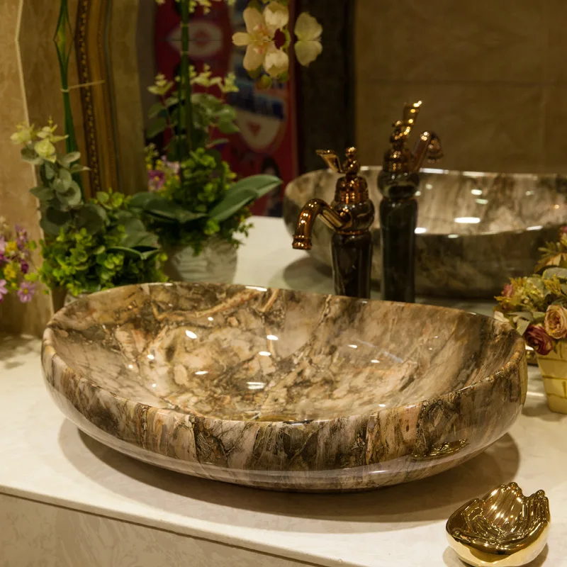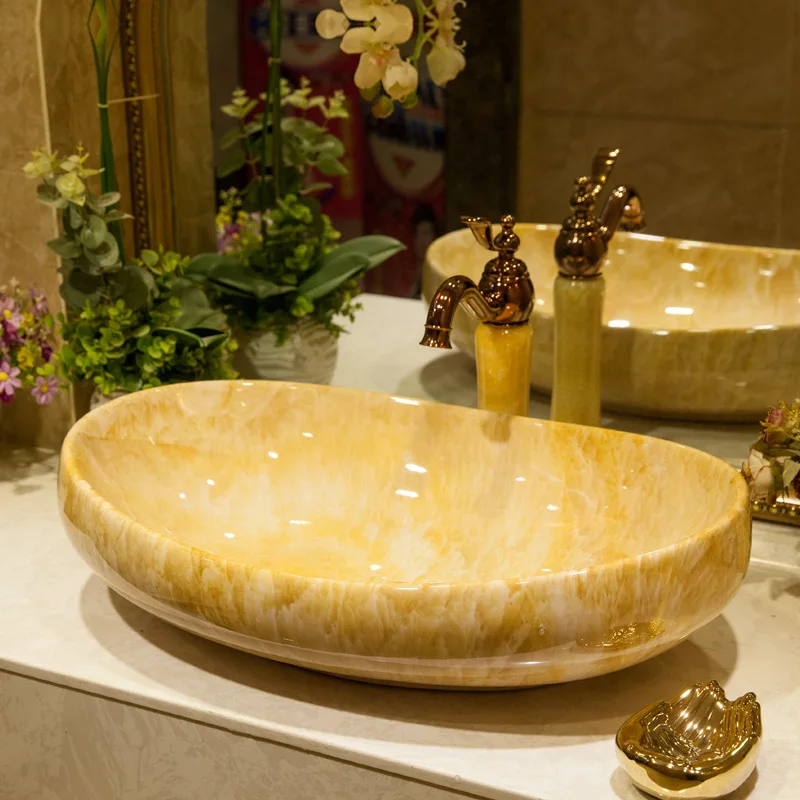 Imitation Marble Porcelain Material Gold Ingots Shape Art Ceramic Bathroom Sink
