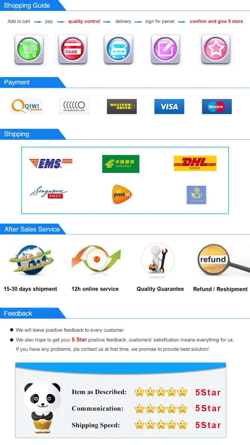 2. Как только посылка будет подтверждена, вы можете повторно отправить ее или вернуть деньги, пожалуйста, не беспокойтесь. Если вы получили неправильный товар, пожалуйста, сфотографируйте пакет и товар, который вы получили, затем свяжитесь с нами напрямую. Мы дадим вам хорошее решение.
