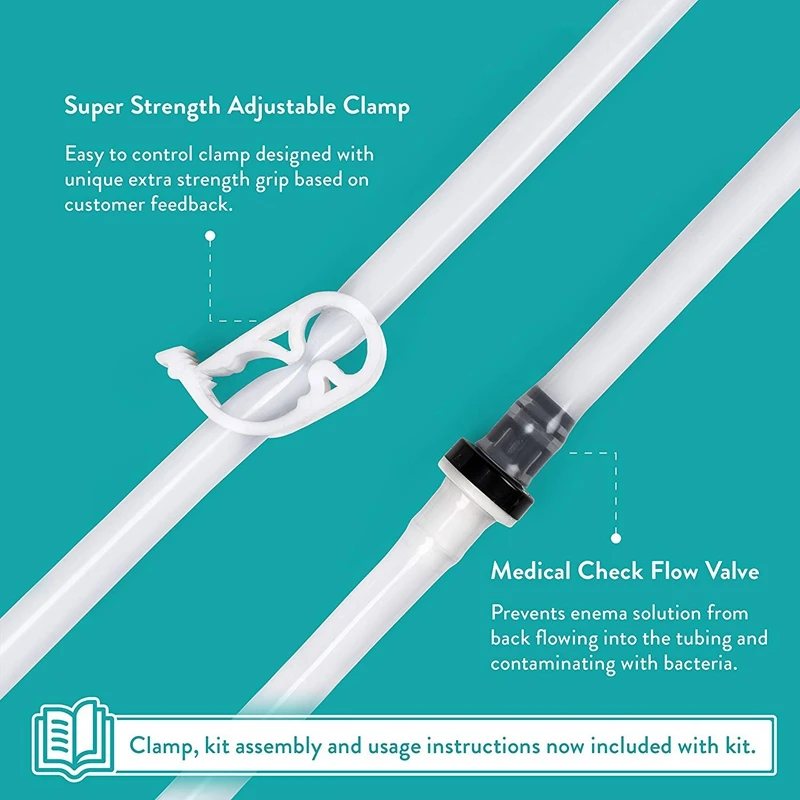 Новый супер сильный дизайн зажима и более длинная трубка. Крепкий зажим и открытая верхняя часть фонтана для легкой очистки. Этот набор для чистки и детоксикации клизмы идеально подходит для путешествий и используется для очистки воды и/или кофе в душе или вне душа.
