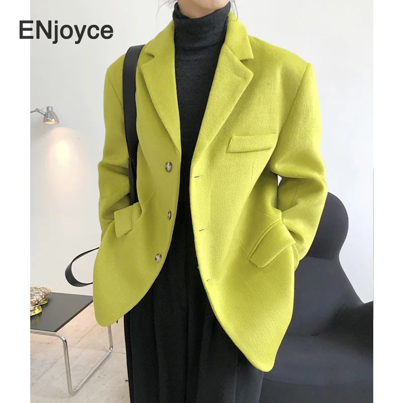 Ткань: полушерстяная (60% шерсть, 40% полиэстер) Костюм высокого класса с простым и элегантным внешним видом Создать модный стиль блогера легко Ткань с шерстяной текстурой подобрана На ощупь сухо и комфортно. Очень широкий и стильный Теплый, удобный, свободный крой Верхняя часть тела аккуратная и имеет шикарный и модный тон Плечо имеет эффект трехмерной плечевой накладки Увеличить общую форму Классический, освежающий, прочный и практичный