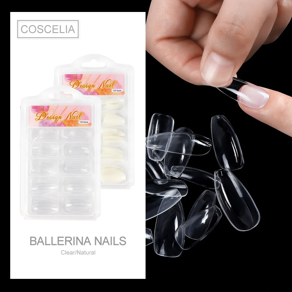100x10 размеров прозрачные французские накладные ногти в коробке