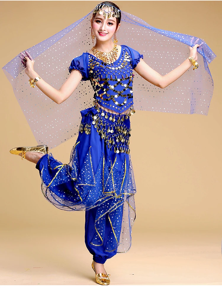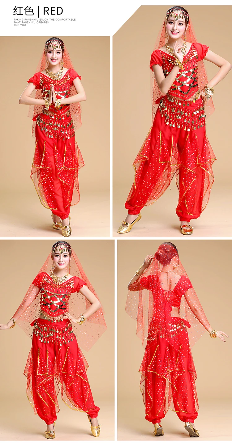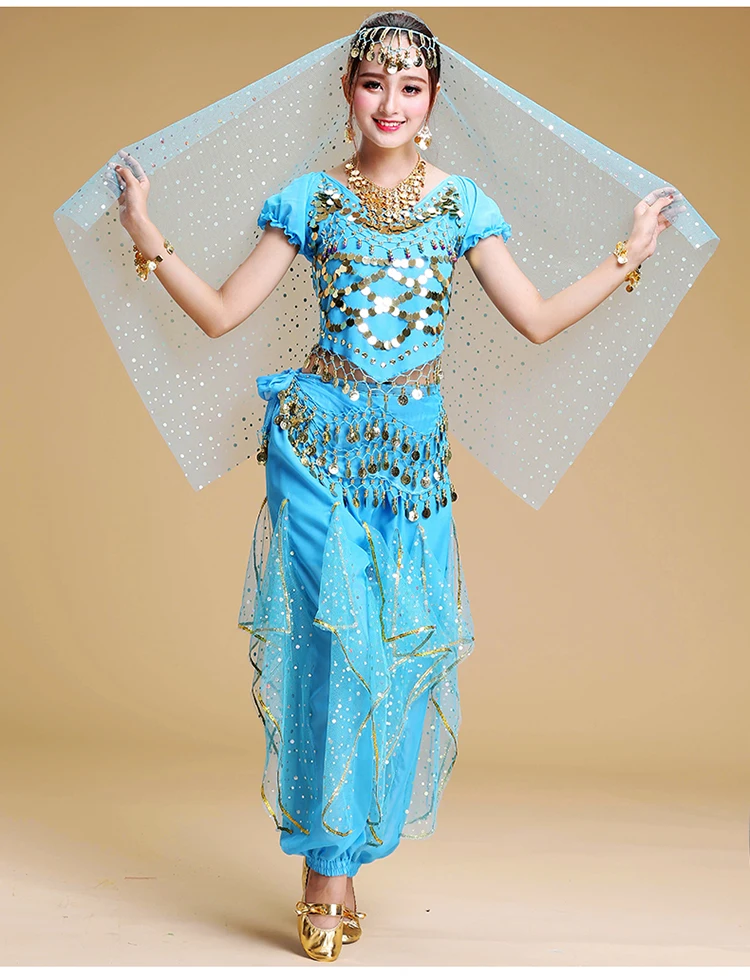 4 шт./компл.: брюки + футболка + резинка на голову + цепочка на талии;