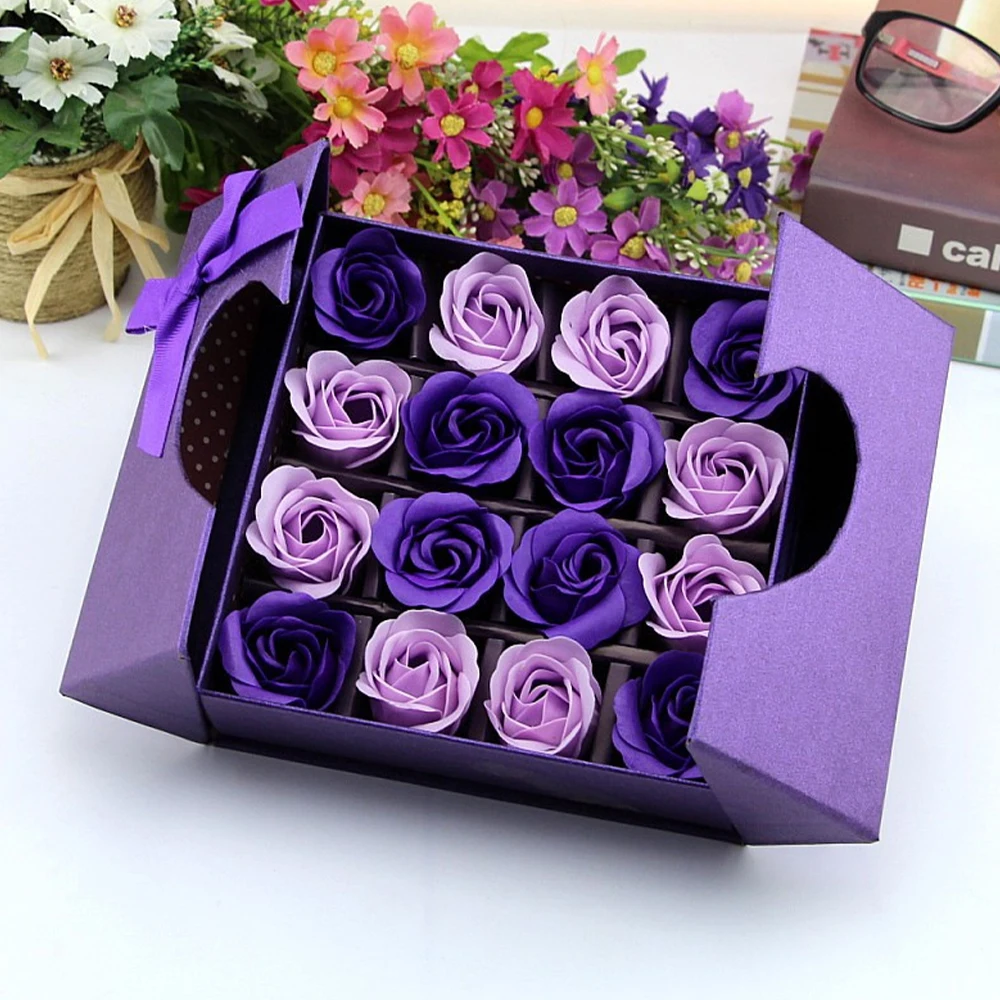 Характеристики: Цвет: красный, фиолетовый, синий Материал: Мыльный цветок + подарочная коробка Использование: используется для праздничных подарков, таких как День благодарения, день рождения, свадьба, день Святого Валентина. Размер подарочной коробки: 17*16,5*5,2 см Упаковочный лист: 16 шт. * мыльные цветы 1 шт. * Подарочная коробка
