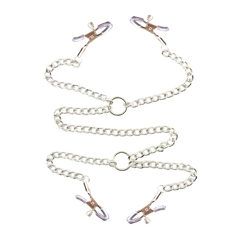 Four-Headed 4 Below Passion Clamp Chain Bondage Adult Toy Body Nipple Labia Clitoris Clip Metal Breast Adjustable Game