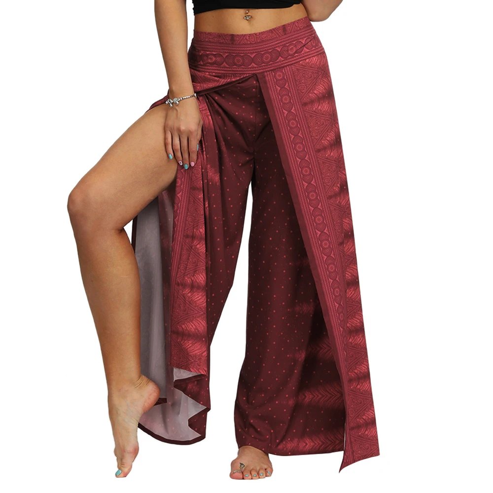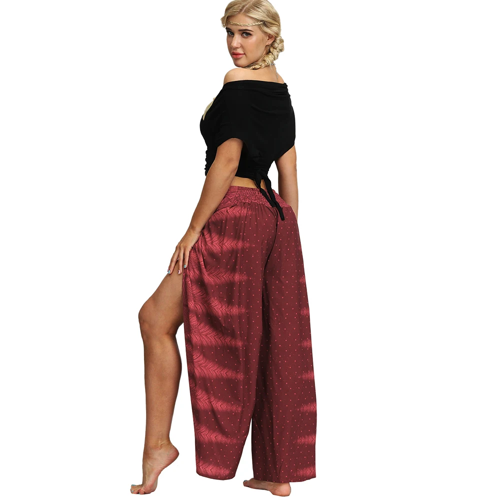 Дизайн: цветочный, Суперлегкий, быстросохнущий, богемный стиль, широкие, свободный крой, с высоким разрезом (S/M,L/XL), многослойный, эластичный пояс, без разрезов, широкие брюки M,L)