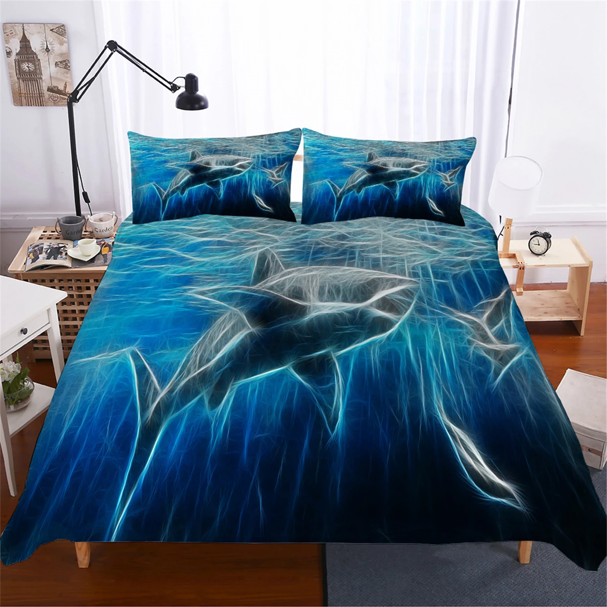 Акула синий Постельный набор животных пододеяльник набор 3d одеяло с принтом одеяло один двойной Королева Король Размер домашний текстиль