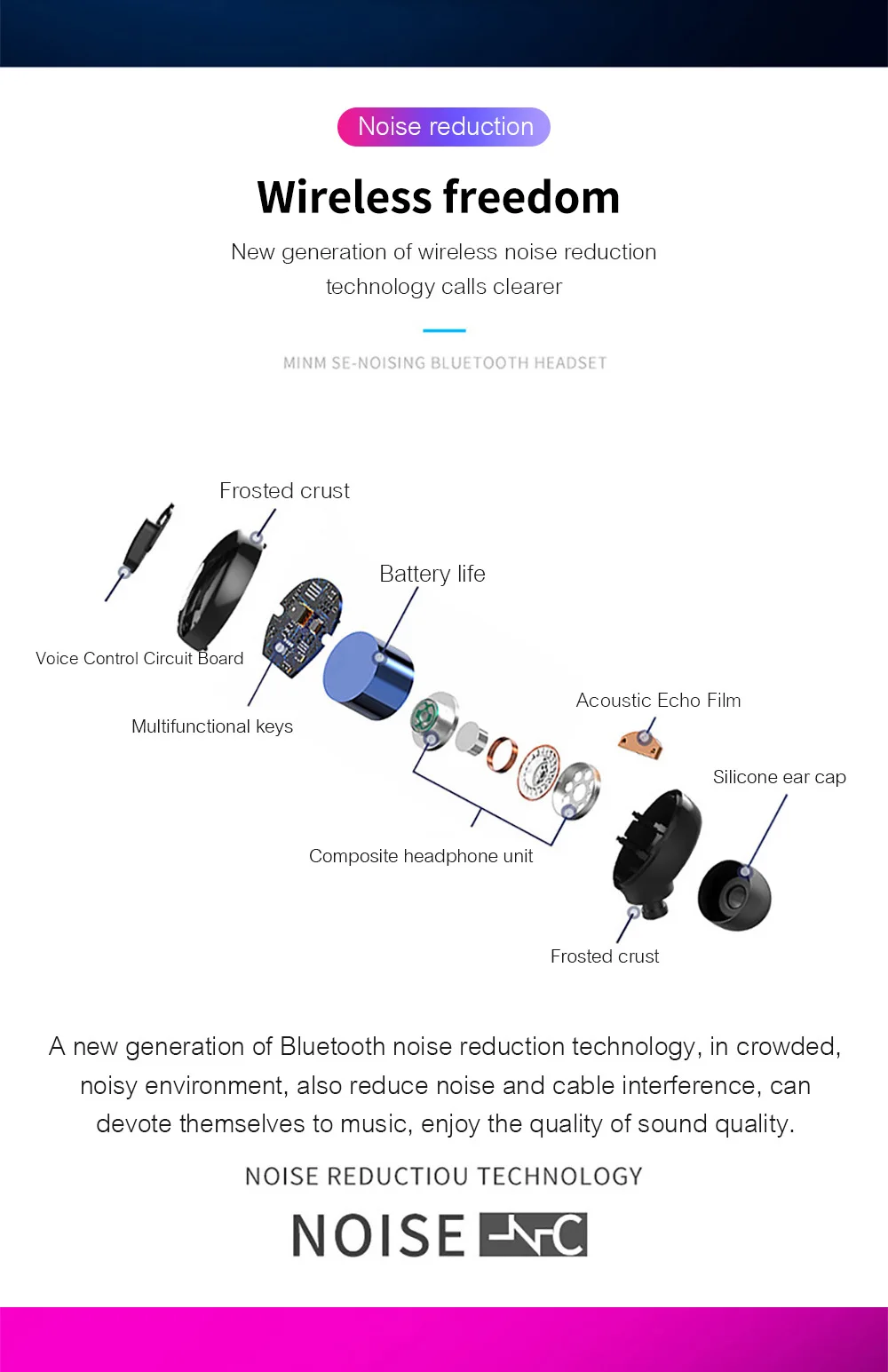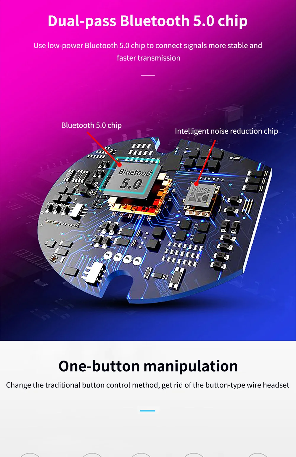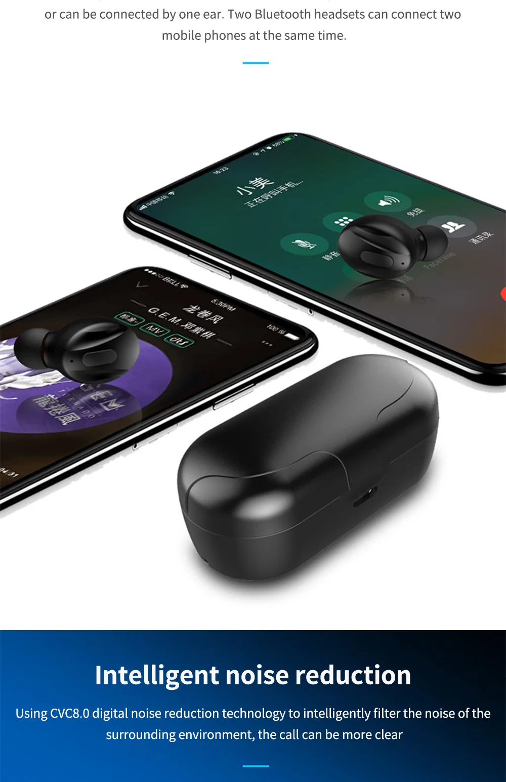 Беспроводная гарнитура Bluetooth 5,0 с шумоподавлением, Спортивная гарнитура для видеоигр, звонки, поддержка всех устройств Bluetooth с микрофоном
