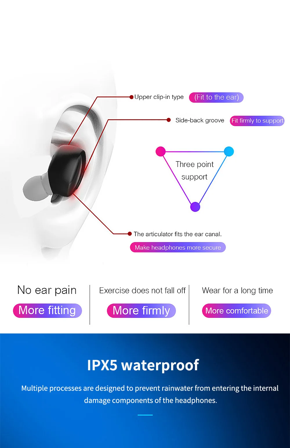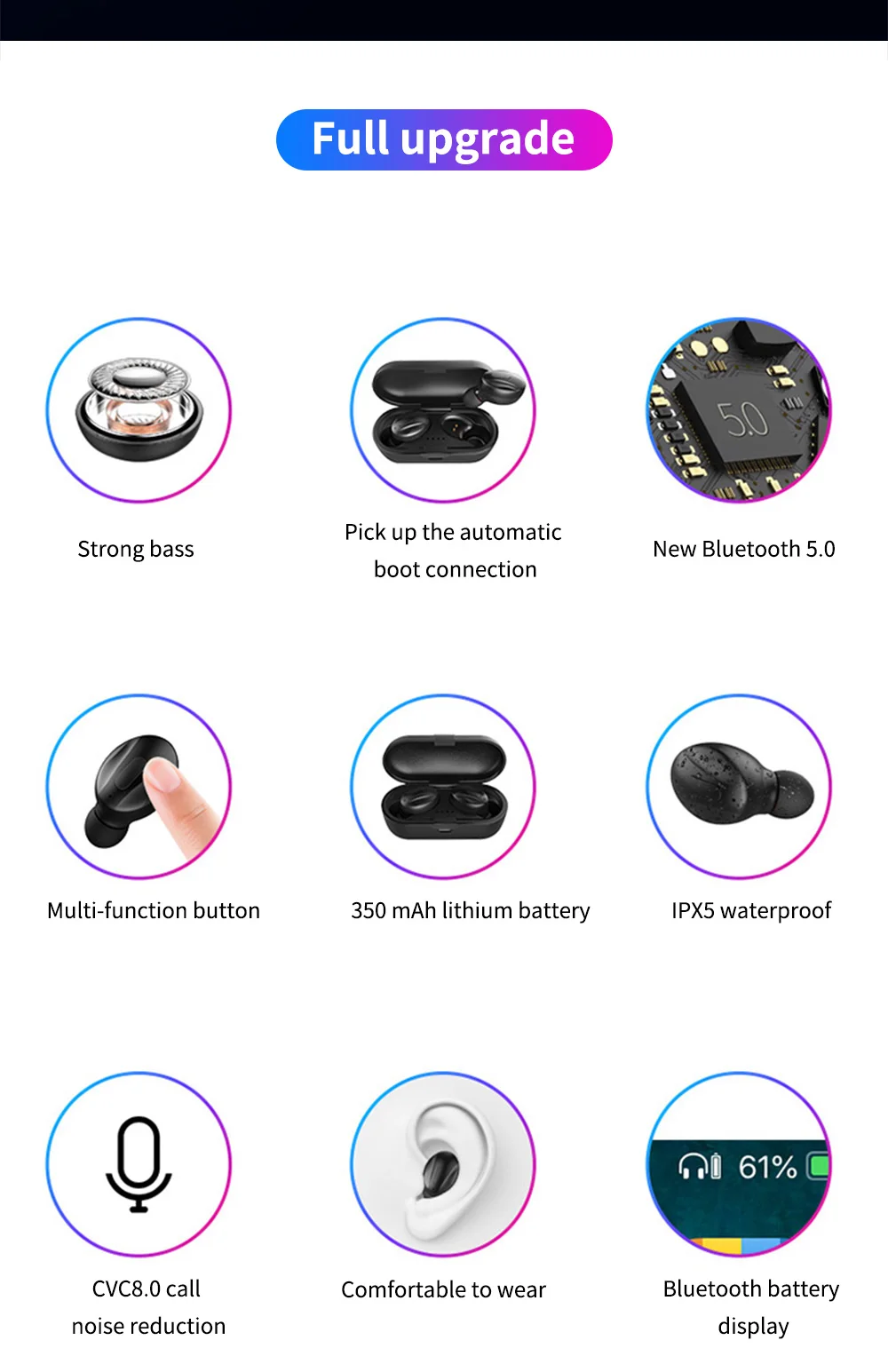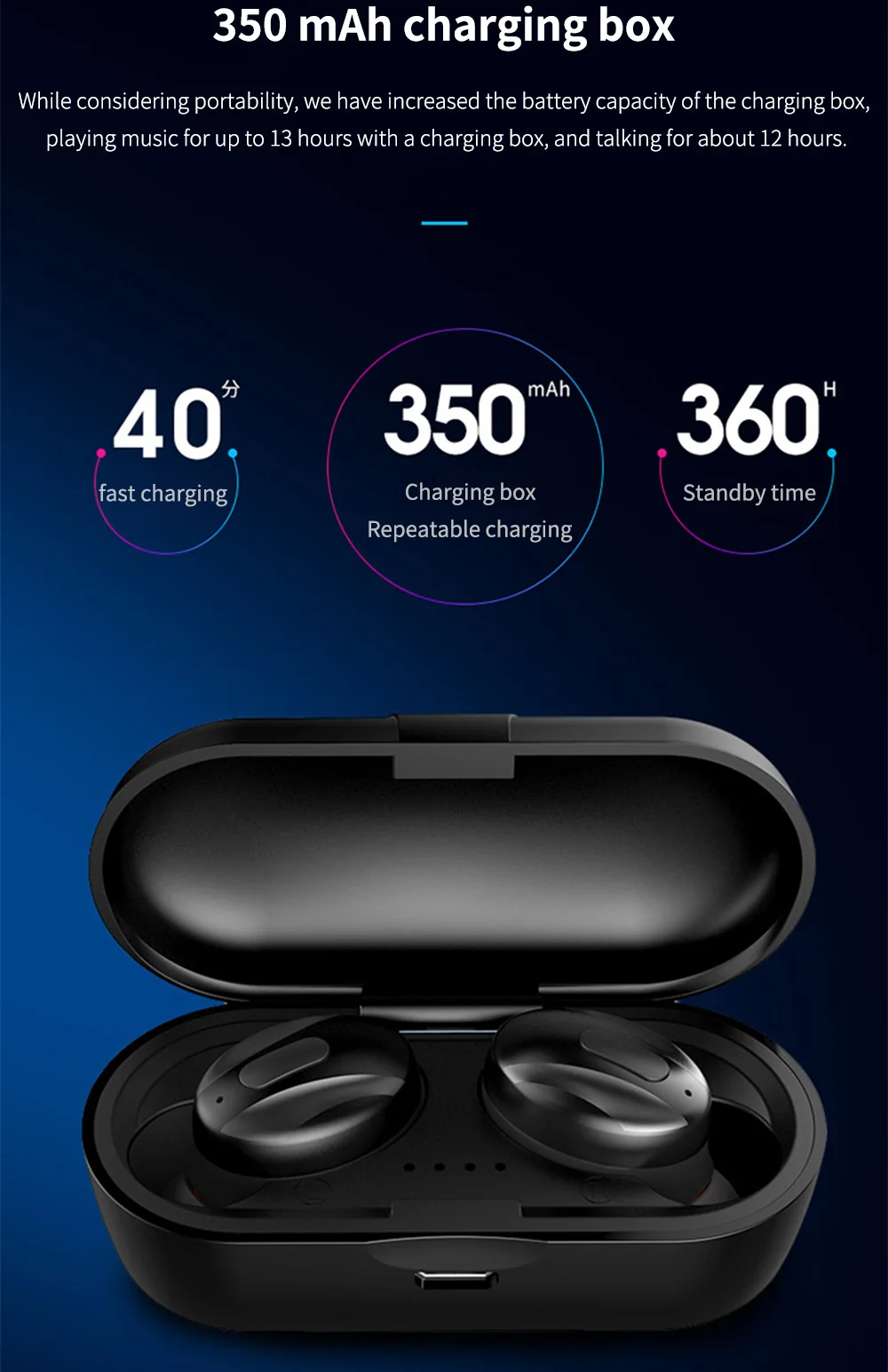 Описание: Версия Bluetooth: 5,0 Динамик для наушников: 88 мм Емкость аккумулятора для наушников: 50 мАч Время зарядки наушников: 2 часа Емкость аккумулятора: 300 мАч Время зарядки за пределами зарядного отсека: 1 час Расстояние передачи: >10 м Время работы в режиме разговора: 4 часа Время игры: 4 часа Система поддержки: все устройства с поддержкой Bluetooth и мобильные телефоны Комплектация: зарядная коробка * 1, наушники L, R, кабель для передачи данных * 1
