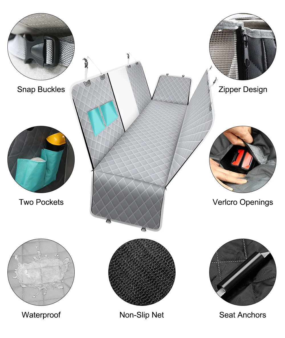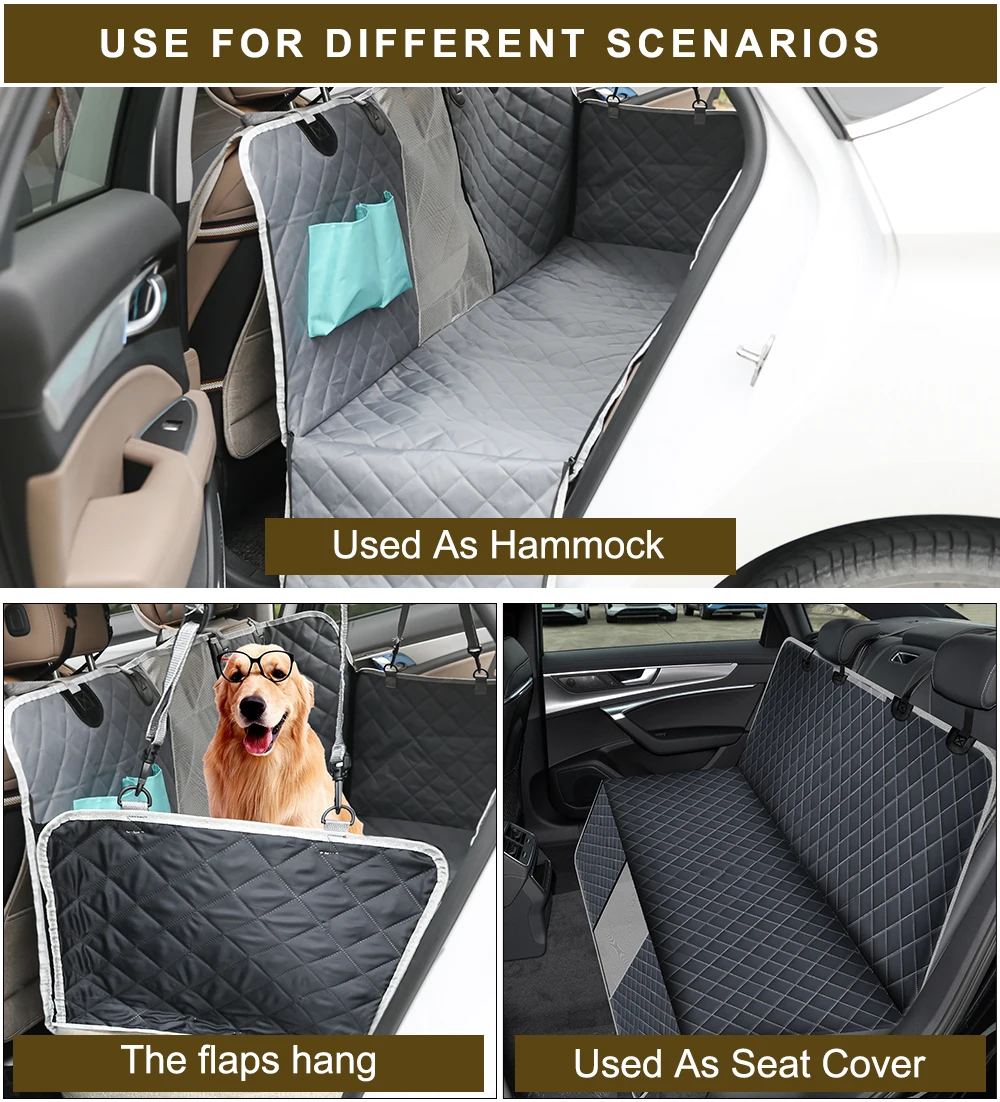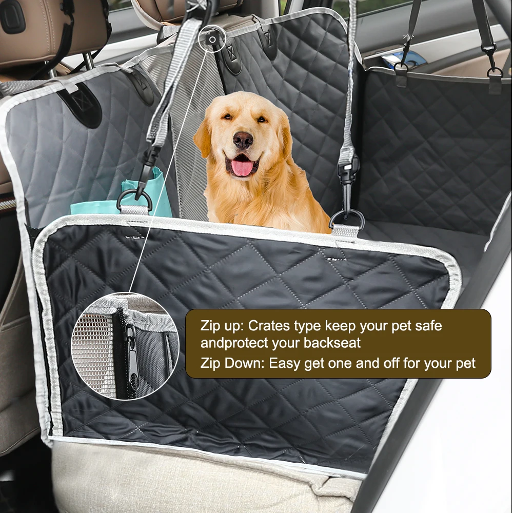 Обновите Сетчатое окно. Чехол для сидения собаки с сетчатым визуальным окном означает, что вы можете проверить поведение питомца и его настроение в любое время, Защитите свою собаку от неприятных ощущений. Кроме того, Сетчатое Окно чехол для на автомобильное сиденье для перевозки собак позволяет потоку воздуха на заднее сиденье, сохраняя прохладную среду для вашего любимого питомца. Конструкция гамака для собак обеспечивает всестороннюю защиту. Закажите этот чехол для сидения собаки, не беспокойтесь о ваших питомцах, чувствуйте себя комфортно во время вождения.Уникальные экологически чистые противоскользящие частицы. В отличие от других чехлов для сидений для собак, чехлы для автомобильных сидений для собак используют уникальные пластиковые противоскользящие частицы, а не обычные пластиковые противоскользящие сетки. Это безопасно, даже если ваша собака попадет в него случайно. Более противоскользящие частицы не расплавятся, как пластиковая противоскользящая сетка в жаркую погоду.Прочные и 100% водонепроницаемые материалы. Чехлы для автомобильных сидений для собак изготовлены из 600D oxford с покрытием из ТПУ и используют технологию горячего прессования, не нужно шить иглы, все убедитесь, что 100% водонепроницаемый. Не беспокойтесь о пятнах мочи, грязи, волосах и т. д. Кроме того, крышка подголовника и боковые щитки могут защитить ваш автомобиль от царапин. После кемпинга на открытом воздухе, собака возвращается на заднее сиденье с росой и пылью, вам не нужно чистить автомобиль. Просто мойте чехол для сиденья питомца с помощью машины, так легко!Совместимость и простота установки, чистка. Просто нужно несколько минут для установки. Отличный размер 143 см в ширину x 152 Длина (больше, чем другие бренды) идеально защитит ваш автомобиль от царапин или грязи. Регулируемые ремни с пластиковой пряжкой обеспечивают максимальную регулируемость для большинства размеров автомобиля. Пластиковые якоря помогут вам надежно закрепить чехол для сиденья собаки на машине.100% пожизненная гарантия и обслуживание клиентов. Если у вас есть какие-либо проблемы с чехлами для автомобильных сидений для собак, свяжитесь с нами. Мы обещаем срочную замену или возврат средств. Не волнуйтесь! Наша служба поддержки клиентов всегда будет здесь за помощью.